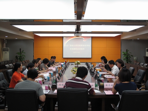 2012年5月8日上午,广西幼儿师范高等专科学校在教务与科研管理处副处长曹小瑾带领下的一行14人到我院考察交流。我院张翔副院长、教务与实训管理处鞠红霞处长、科技开发处谭界忠处长及教务与实训管理处相关人员热情接待了来宾。双方在行政办公楼300会议室举行座谈。