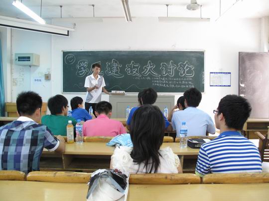 5月18日下午,在博闻楼一楼的各教室里,全体学员分成八个讨论小组开展了题为“学风建设大讨论”活动,大家围绕“加强学风建设,教师该怎么做?”、“加强学风建设,我们学生该怎么做?”、“加强学风建设,学校该如何加强管理?”三个问题展开广泛深入的讨论。干部们从主人翁的角度,积极思考,对学院整体的学习风气表示肯定,同时也客观分析了当前班级学风存在的问题及原因,提出了自己作为一名学生干部该如何带头把班级的学风建设好的办法或方案,会场气氛热烈,大家各抒已见、畅所欲言,积极为学院学风建设建言献策,提出了许多宝贵的意见和建议。