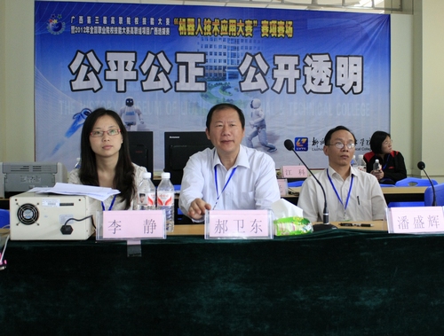 5月25日上午9点至12点,机器人技术应用比赛项目在我院竞择楼顺利开赛,来自南宁职业技术学院、柳州职业技术学院和柳州铁道职业技术学院的三只参赛队伍共9名选手参加了角逐。