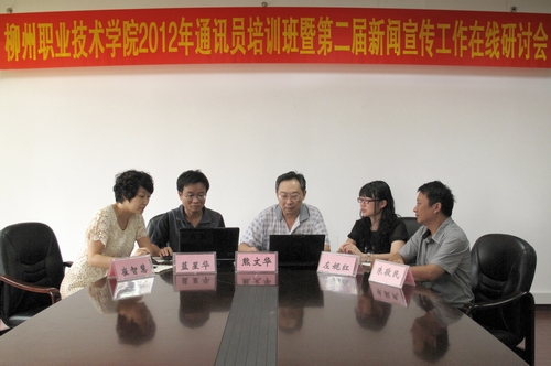 继去年首届新闻宣传工作在线研讨之后,2012年学院新闻通讯员培训班再次采用在线研讨的方式。本次在线研讨的主会场设在行政楼303会议室,分会场则是在各部门、系部教职工通讯员各自的办公室。大家登录本人QQ,在柳职院通讯员QQ群中进行在线交流、发言。同一时间,不同地点,全院通讯员的大脑一同飞转,碰撞出绚烂的智慧火焰。