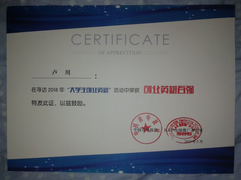 喜讯:我校两名学子获评2018年“中国大学生创业英雄百强”称号