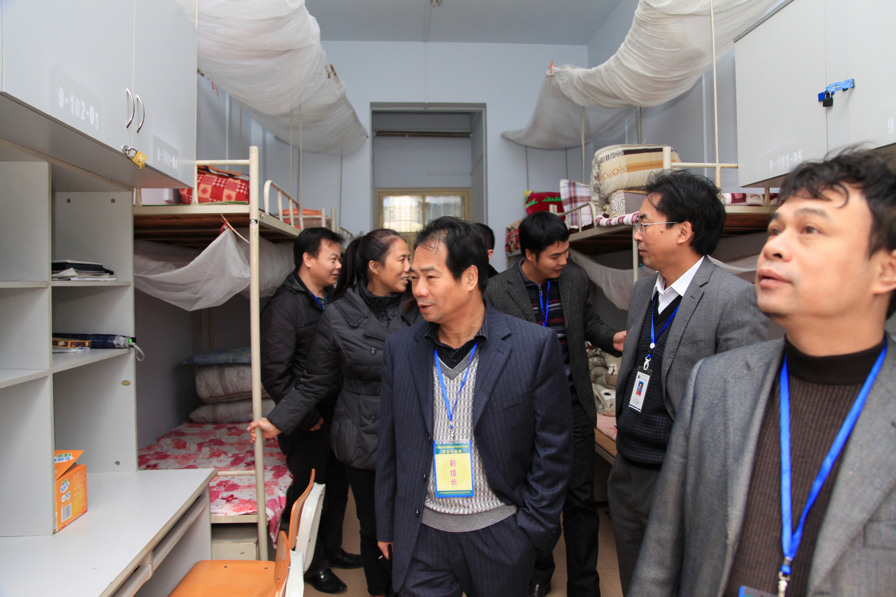 2012年12月18日上午,以广西医科大学后勤处处长何有贵为组长的广西高校标准化学生公寓评估验收组一行四人到达我院,对我院今年申报的六幢学生公寓进行了现场检查评估。