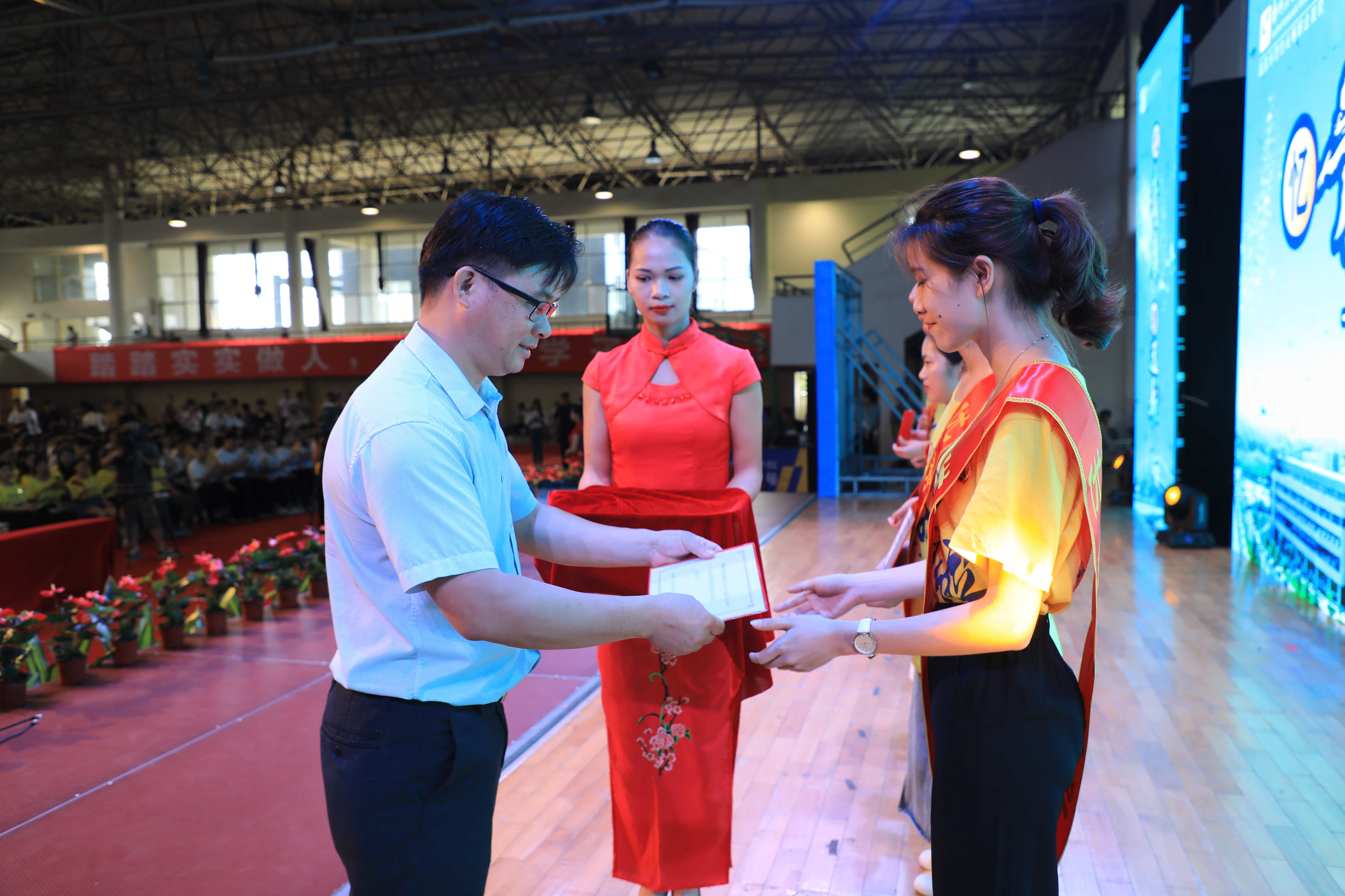 过去三年,2019届毕业生刻苦学习、积极实践,涌现出一大批优秀个人和先进集体,副校长林若森、瞿凡,总会计师冉福松给荣获广西壮族自治区“优秀毕业生”荣誉的38名学生颁奖。