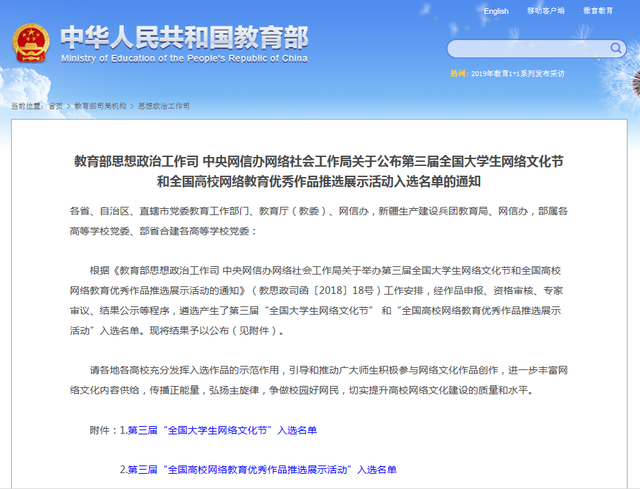 喜讯:我校微视频荣获第三届“全国大学生网络文化节”一等奖