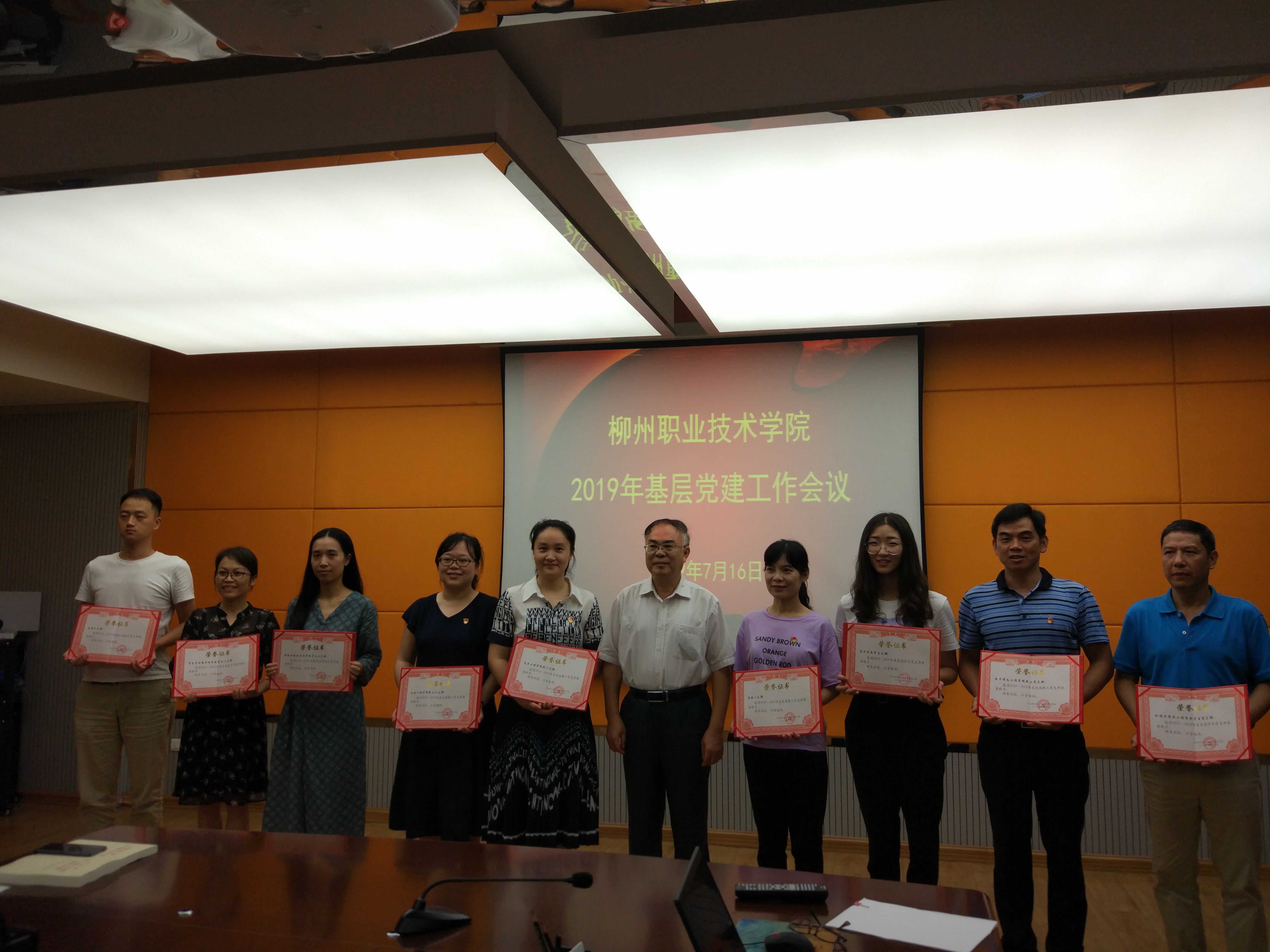 会议首先表彰了2018-2019学年度学校先进基层党组织、优秀共产党员和优秀党务工作者。阳旭宣读表彰文件,朱伟才为先进基层党组织现场颁发荣誉证书。