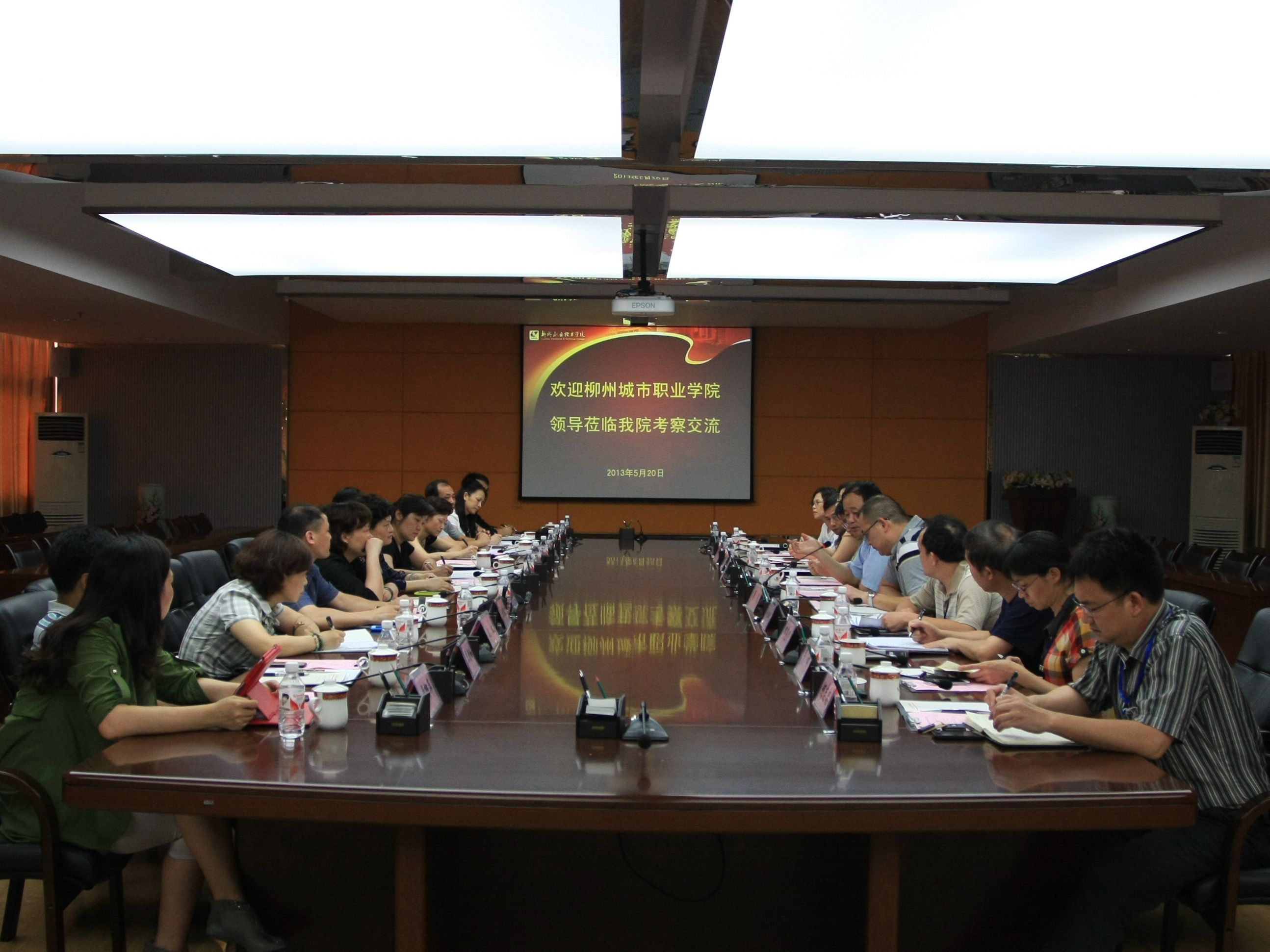 2013年5月20日,柳州城市职业学院范莉莎院长一行12人到我院参观交流。我院院长石令明、副院长林若森及各相关部门领导热情接待了来访客人。