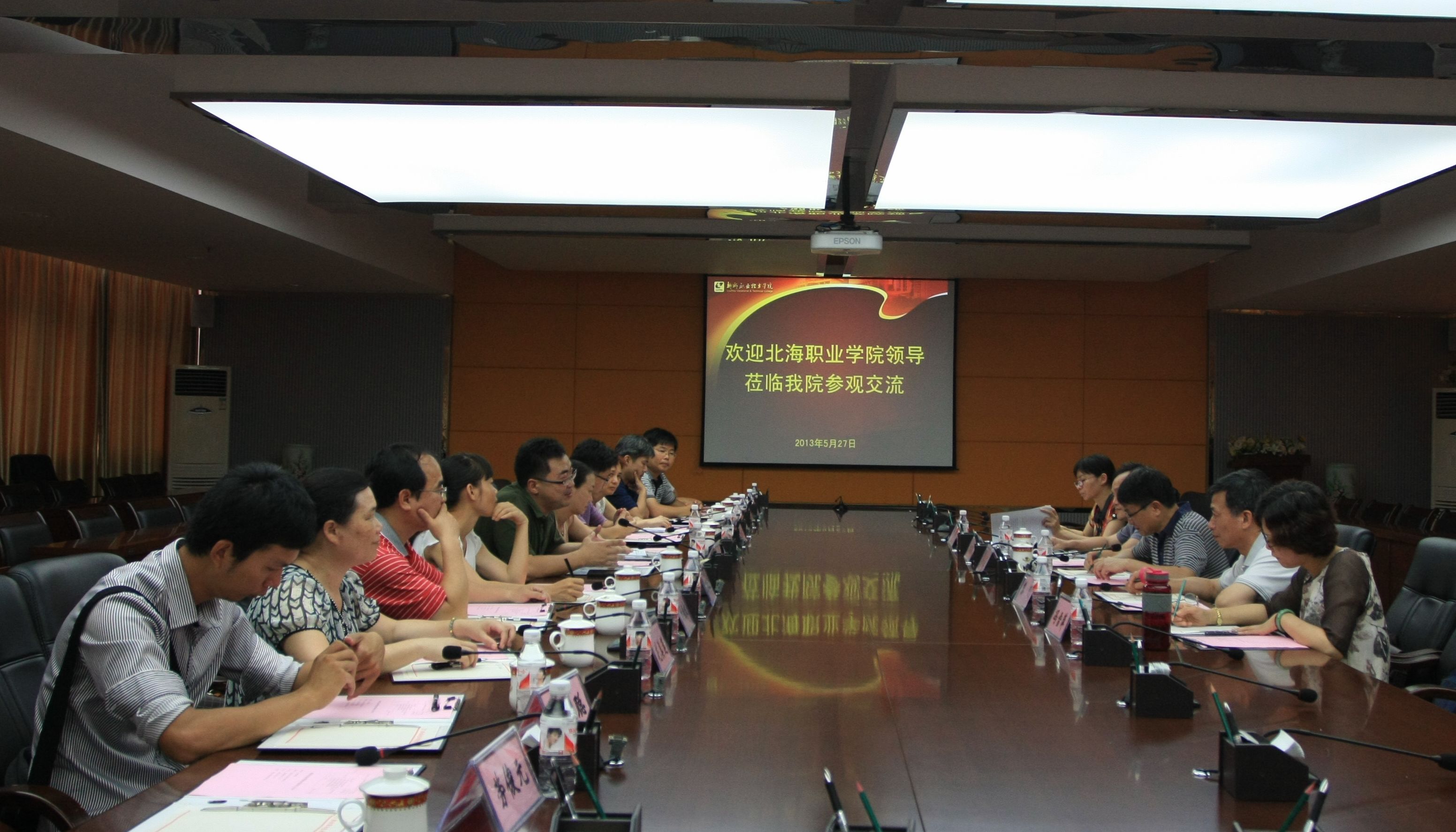 2013年5月27日上午,北海职业学院副院长汪卫星一行12人到我院考察交流。我院副院长林若森、教务与实训管理处副处长黄海国、继续教育中心主任黎刚、机电工程系主任韦林、财经与物流管理系主任冯雪萍热情接待了来访客人。