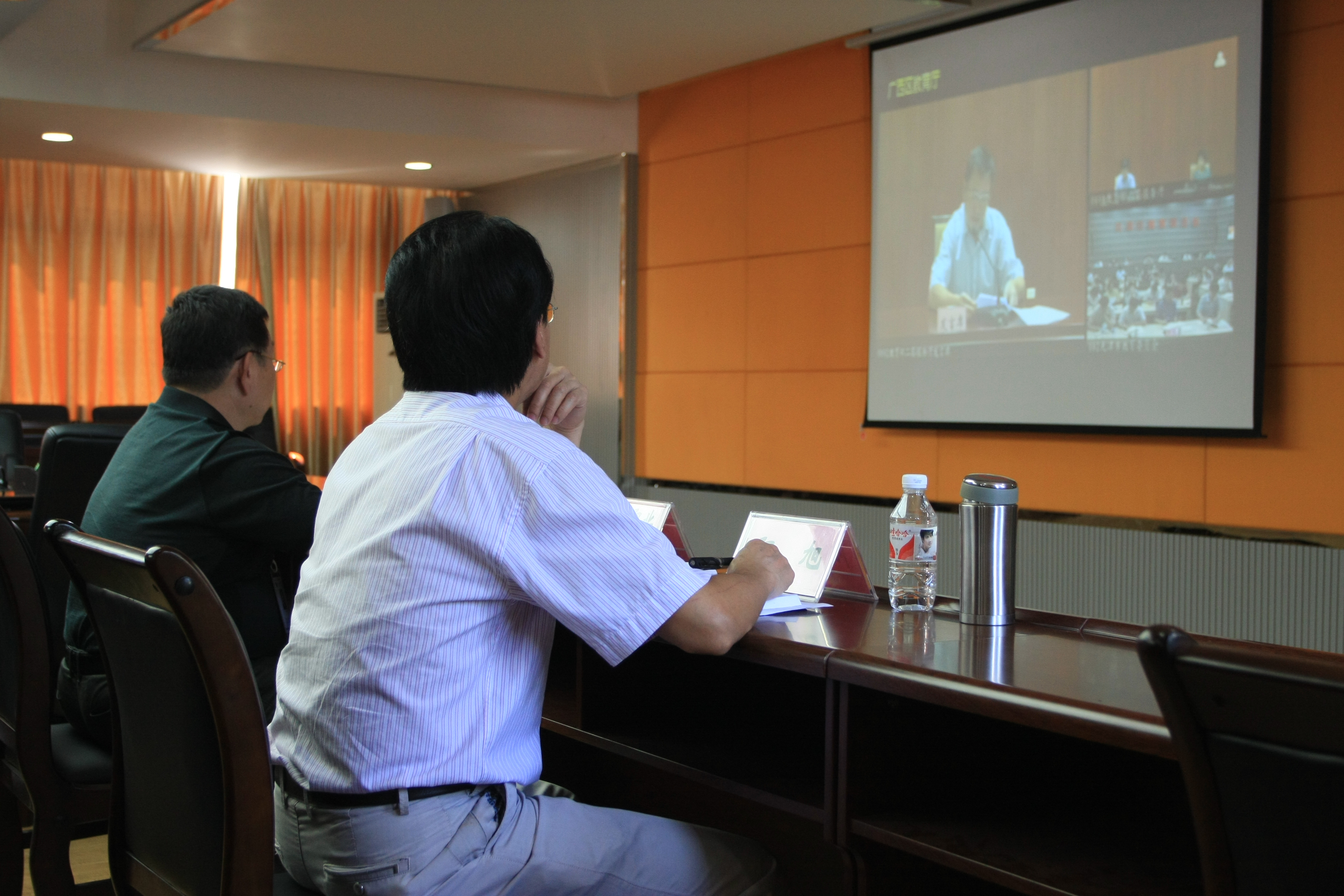 国家教育部于2013年6月14日下午召开高等学校大学生自主创业教育工作经验交流视频会,根据《关于参加高等学校大学生自主创业教育工作经验交流视频会的通知》(桂教办【2003】373号)的组织实施,我院设分会场。学院党委副书记阳旭、院长助理敬志轩、教务与实训管理处鞠红霞处长、招生就业处张斌副处长、公共基础部(思政部、素质教育基地)陈芳副主任及心理与就业系列课程教学团队相关教师在行政楼300会议室参加了视频会议。
