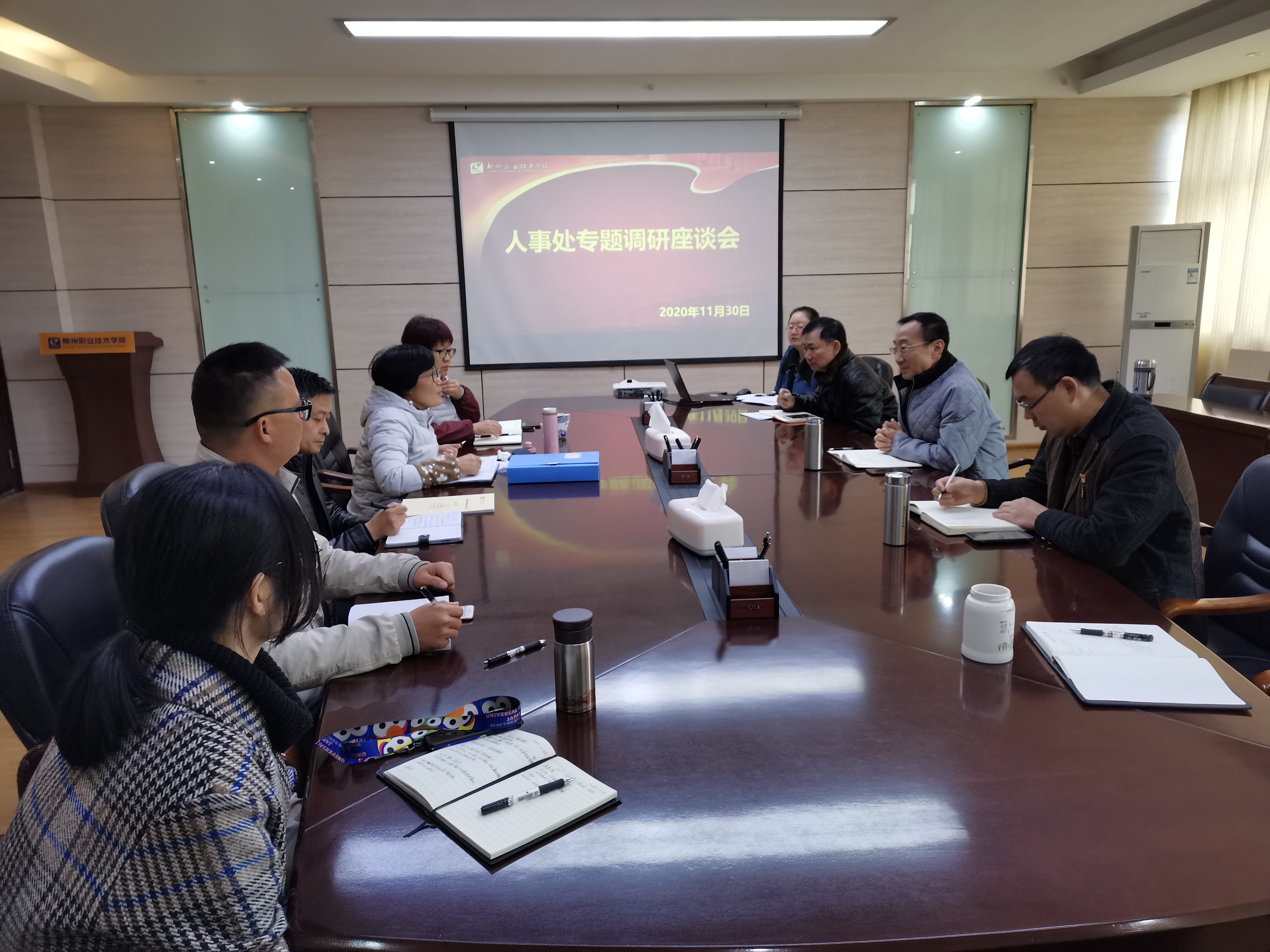当天上午,刘子林带队到人事处开展专题调研,听取了“双高”建设项目、中高端人才引进、人才激励机制等工作情况汇报,就工作中存在的重点难点问题和创新发展思路进行了深入探讨。刘子林指出,随着办学规模的不断扩大和职业教育事业的快速发展,人事制度要适应新形势、新要求,提前谋划,进一步优化人才队伍结构,加大正向激励,营造干事创业的良好环境,让更多优秀人才引得进、留得住、用得好。
