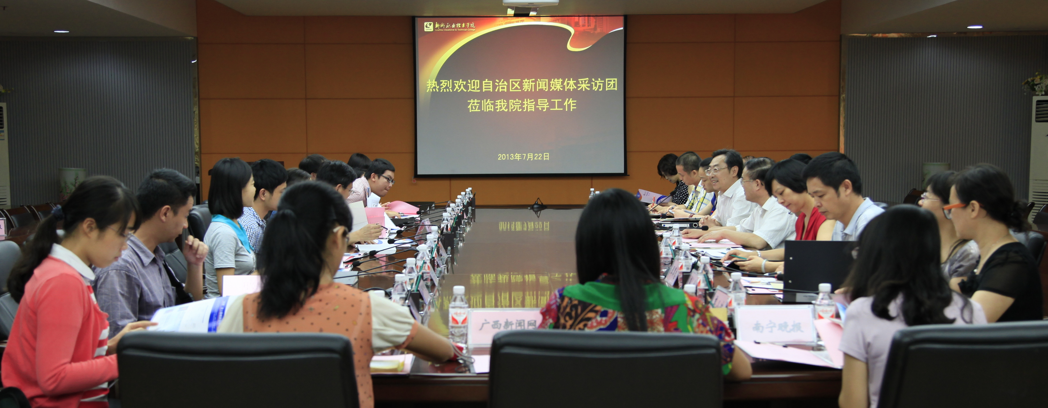 宋联武副处长简述此次来访的背景时说,我国职业教育的发展步入了一个崭新阶段,国家及自治区领导对职业教育投入了前所未有的关注,也对职教提出了很多新要求;国家将在年内举行全国职教大会,职教领域要为9月召开的第二届东盟职教联展营造氛围;2008年-2010年3年的职教攻坚取得不俗成绩却也存在很多问题,我区职教也在追赶全国的步伐,根据工作要求,特组成此次采访团,对柳州市的高职院校和中职学校进行一次综合性的采访,通过采访,总结各校在产教融合、校企合作、人才培养、技术研发与社会培训上取得的有益经验,并着重采访职教如何服务产业发展、如何服务地方经济、如何促进地方社会民生和谐及如何以教育扶贫促社会稳定上所取得的成效。