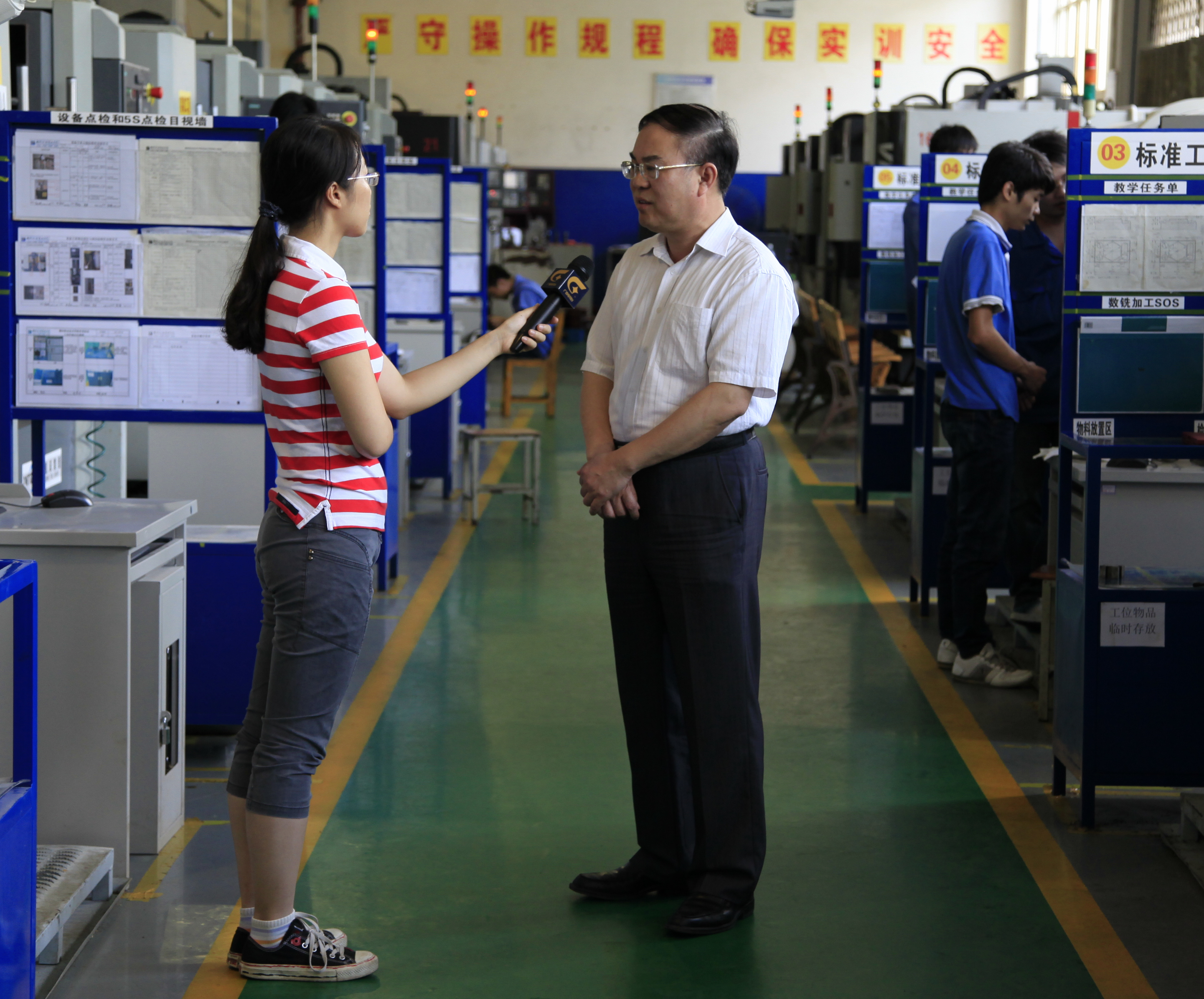 广西电视台记者在机电工程系实训基地采访朱书记