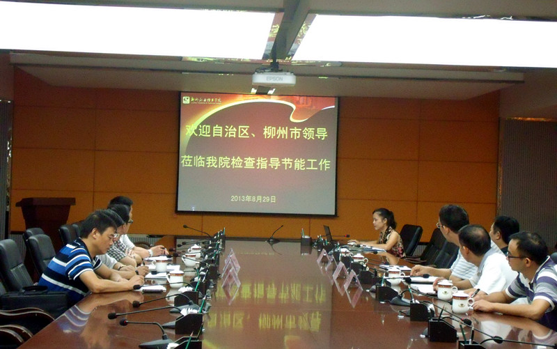 8月29日上午,自治区公共机构节能督查组领导梁万山副局长、殷仕伦主任和柳州市节能办领导何志忠书记等一行八人来到我院检查指导节能工作并听取柳职院创建示范单位工作汇报。