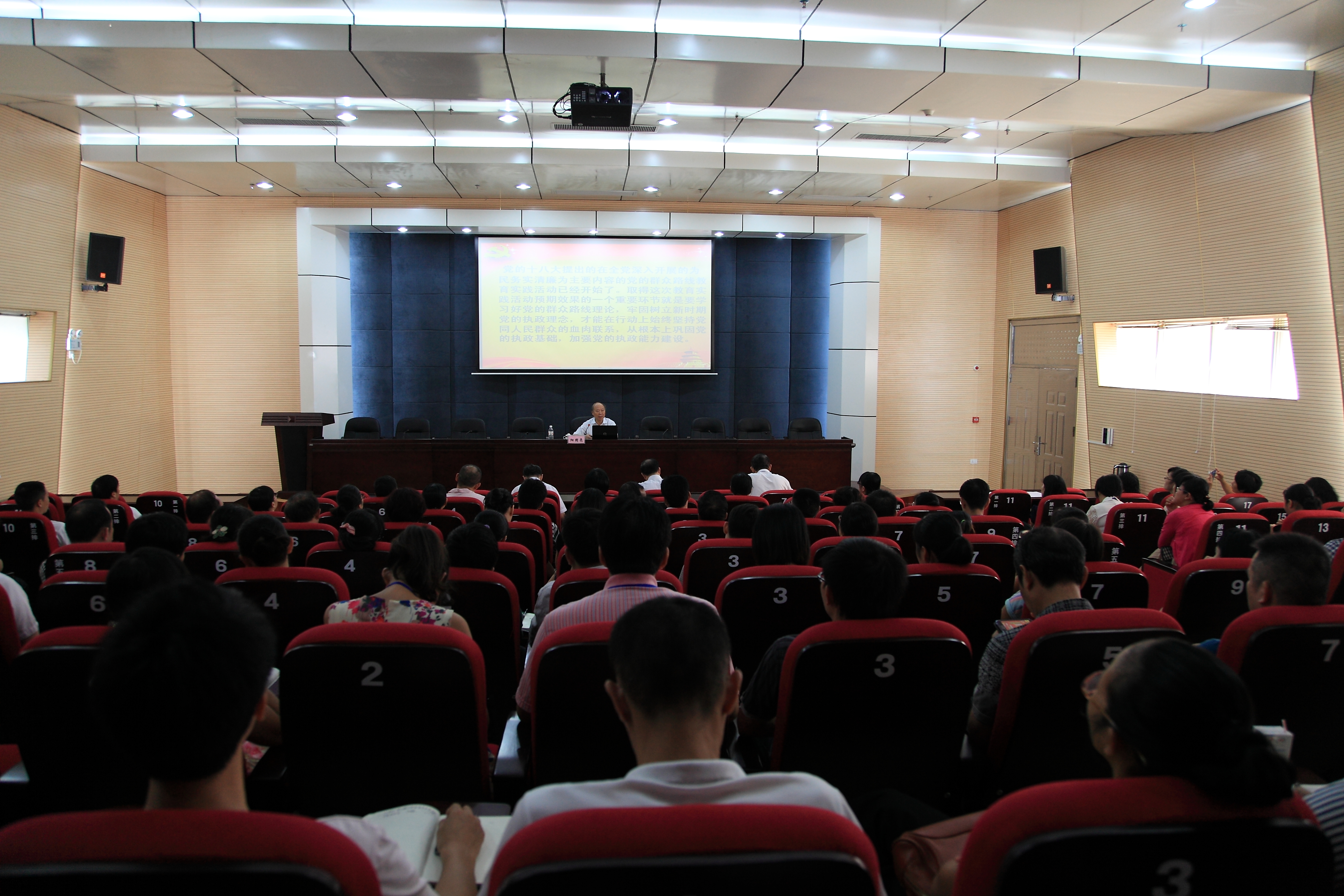根据学院党的群众路线教育实践活动领导小组的部署,9月11日上午,自治区党的群众路线教育实践活动第十五督导组组长、广西大学原党委书记阳国亮教授应邀来学院,作了题为《深刻把握党的群众路线理论 牢固树立新时期党的执政理念》的专题辅导报告。学院党委书记朱伟才、副院长熊文华、副院长杨毅出席报告会,全院科级以上干部、党的群众路线教育实践活动领导小组办公室成员、各基层党组织的书记及组织委员、公共基础部(思政部、素质教育中心)思政教学团队全体教师等参加了会议。报告会由院群众路线教育实践活动领导小组组长、党委书记朱伟才主持。