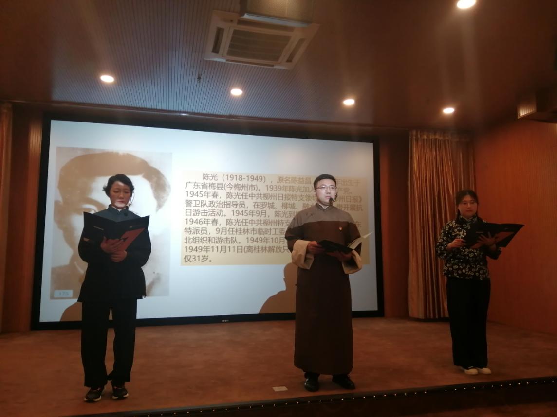 柳职刘玉芳、赵佃学、陈学超诵演革命烈士陈光的《一封没有写完的信》