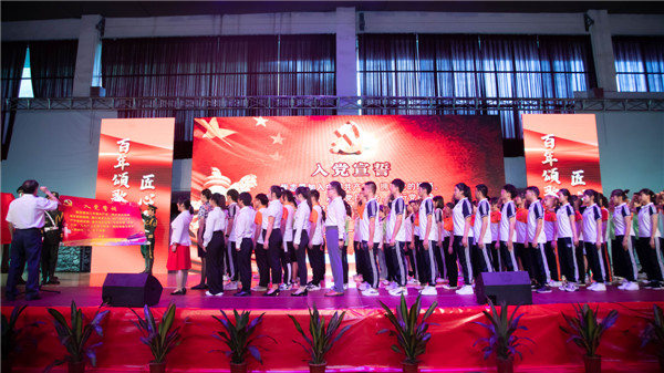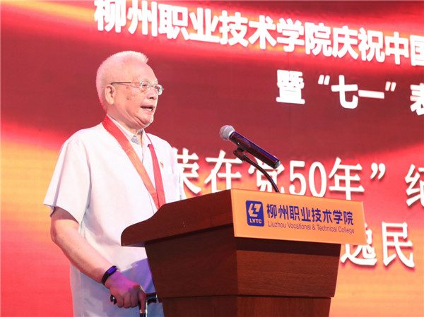 新闻网消息(文/党委组织部 张思琪 图/大通社)忆往昔风雨兼程岁月如歌,看今朝百年华诞风华正茂!2021年6月28日上午,柳州职业技术学院庆祝中国共产党成立100周年暨“七一”表彰大会在社湾校区体育馆隆重举行。学校全体教职工、获表彰的先进基层党组织和个人、“光荣在党50年”纪念章获得者及100名今年新发展党员教师、学生代表参加大会;大会由校长甘金明主持。
