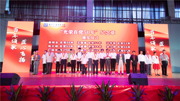 五十年党龄,五十载光荣。大会为“光荣在党50年”纪念章获得者举行颁发仪式,刘子林、甘金明为老党员逐一戴上纪念章。邓逸民同志作为纪念章获得者代表发表感言,简单朴实的语言,透露出对党无限的热爱;未能到场的老党员也通过视频表达了对党衷心的感谢和节日的祝福,他们对党忠诚、坚守奉献的精神令人肃然起敬。
