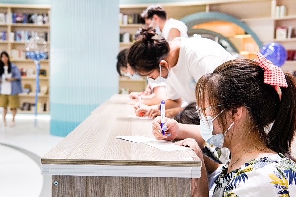 现场学子在小纸条上写下自己对家人的节日问候与祝福