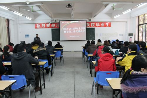 1月14日下午,我院辅导员工作交流会在招聘室举行。各系书记、学干、全体辅导员以及学生工作处人员参加了会议。