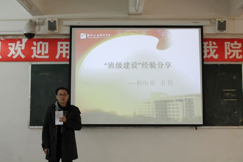 会上,2012-2013学年“十佳班级辅导员”获得者、机电工程系辅导员韦伟向大家介绍了他在班级建设中的成功经验和体会,他从班级管理意识建立、班级建设框架构建、学生干部培养、思想教育与日常事务等五个方面进行详细阐述,内容具体,切合实际,大家深受启发。