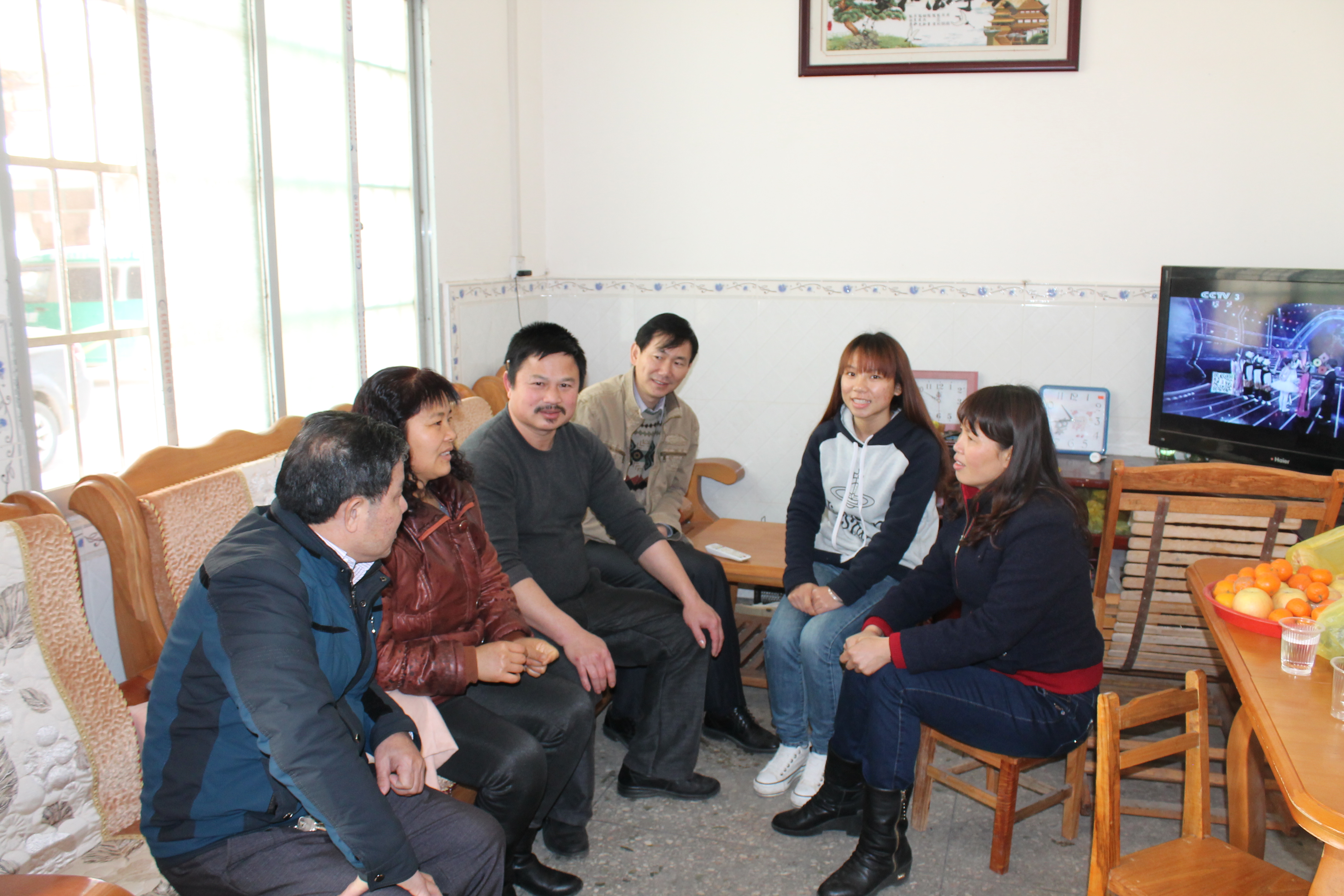 慰问组人员与刘丽舅父舅母交谈