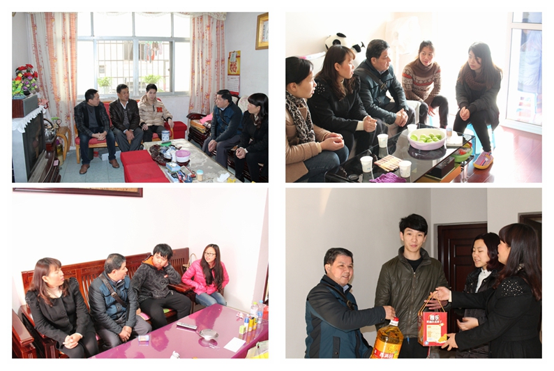 带着学院领导的关爱和全院师生的一片深情厚意,1月20日和21日两天,院学生工处一行3人和5位辅导员,分别在市区和柳城县龙头乡走访看望刘丽等五位家庭经济特别困难的学生和家长。五位同学中,有二位是孤儿,一位身患残疾,另二位是单亲,他们都是低保家庭,家庭经济特别困难。此前,五位同学都获得了一等国家助学金(每年每人3500元)。此次学院特意派人上门家访,一是进一步了解他们的家境状况,宣传党和政府的资助政策,二是代表学院看望、慰问家长,传递学院领导以及全院师生对贫困生家庭的关爱,并送去大米、油等慰问品。