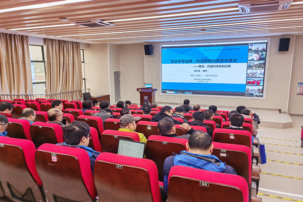 1月12日的培训专题是“高水平专业群建设”,分别由威海职业学院创校校长金志涛教授和我校机电工程学院院长陈文勇进行培训。金志涛教授作了题为《“高水平专业群”内涵重构与体系化建设》的专题报告,从一个职业教育研究专家学者的角度介绍了产业、专业群、课程的体系构建,并列举实例分析,从理论和实践解答专业群如何建、建什么的问题。陈文勇作了题为《机电工程学院高水平专业建设阶段性总结》的报告,介绍了机电工程学院在国家示范专业建设、国家双高计划、引进德国AHK培训和考核体系、UK NARIC国际专业认证等专业建设中的经验。