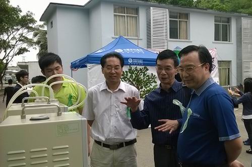 向领导和嘉宾介绍监测仪如何监测大气中TSP、So2、No2