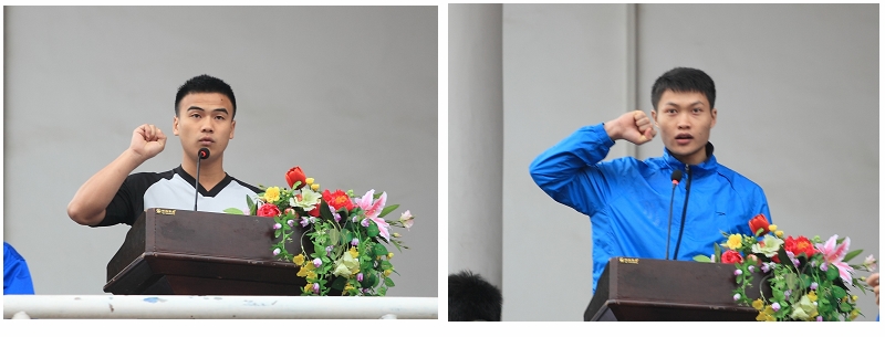 这是全院师生期盼已久的盛会,这是一次集健身与娱乐为一体的狂欢。运动场旁边,“每天锻炼一小时,健康工作50年,幸福生活一辈子”、“志当高,学当勤,能必强,技必精”和“踏踏实实做人,认认真真做事”三条横幅高悬,映红了每个人的脸。各系(部)大本营前,招贴画上的各种口号则为运动会营造了加油鼓劲的良好氛围。“我不是来卖萌的!”暗藏“杀机”;“趁你还可以,动起来!”充满紧迫感;“运动会,我们来了!”“We are winner!”则将“舍我其谁”的霸气尽情流露。