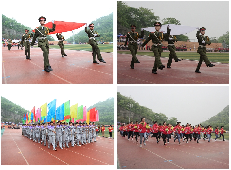 绿茵场上,国旗队、鲜花队、彩旗队、裁判员队伍以及教职工方块队、各系学生代表方块队,在激昂的《运动员进行曲》声中依次从主席台前经过,每支队伍都各自想尽高招引人注意:财经与物流管理系百名女生组成的鲜花队,踏着轻快的鼓点抓住了人们的视线;汽车工程系组成的彩旗队男生高呼:“汽车动力,所向披靡;超越极限,永争第一”的励志口号飙了一把高音;贸易与旅游管理系教职工方块队经过时放飞了象征和平的白鸽,让人们惊叹和欢呼;电子与信息工程系方块队则手拿键盘潇洒经过,尽显专业风采……