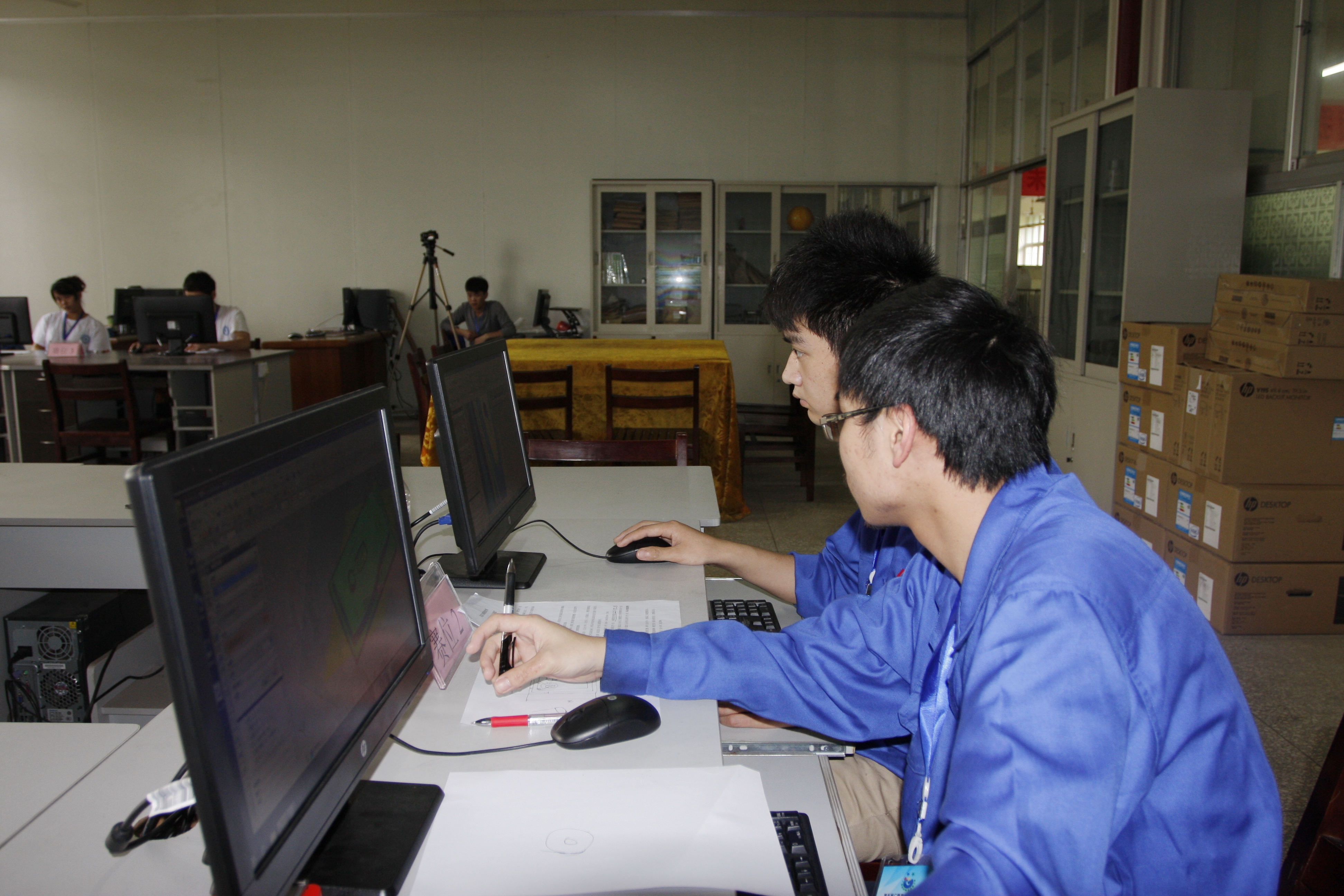 三楼模具中心进行的是“三维建模数字化设计与制造”赛项。该赛项共有4支队伍、8名选手参赛。裁判来自桂林电子科技大学和广西大学等单位。