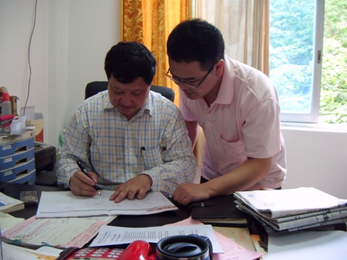 注重教给学生以鱼、渔、欲、儒、娱的广西高校教学名师卢明教授,是一位风趣、直爽、亲切的长者,工作中注重对青年教师的培养,重视青年教师的成长。2010年他与青年教师黄鹏超建立师徒关系,为使小黄尽快适应教学工作,卢教授全身心、无保留地给予指导,手把手进行实际操作技能训练。每学期开学初,双方都要认真研究教材,共同制订教育教学计划,确定教学进度,精心安排教学内容与实践项目。每次相互听课后,双方都能及时交换意见。耐心地帮助小黄认真总结成功经验,从而改进教育教学方法,提高实际教学的能力。三年来,小黄两次到企业挂职,期间不断总结企业经验,积极参与学院的课程改革。在卢教授的指导下,截至目前,小黄已公开发表论文12篇,其中核心刊物4篇。其中1篇获得广西教育厅优秀论文二等奖,其中4篇获得广西内燃机协会优秀论文二等奖;4次在学院教育教学比赛中获奖,现主持申报教育厅科协科研项目一项,主持和参与院级科研项目5项,部分项目已经取得阶段性的成果,主持和参与公开出版教材3部,可谓教学与科研比翼齐飞,成果累累。