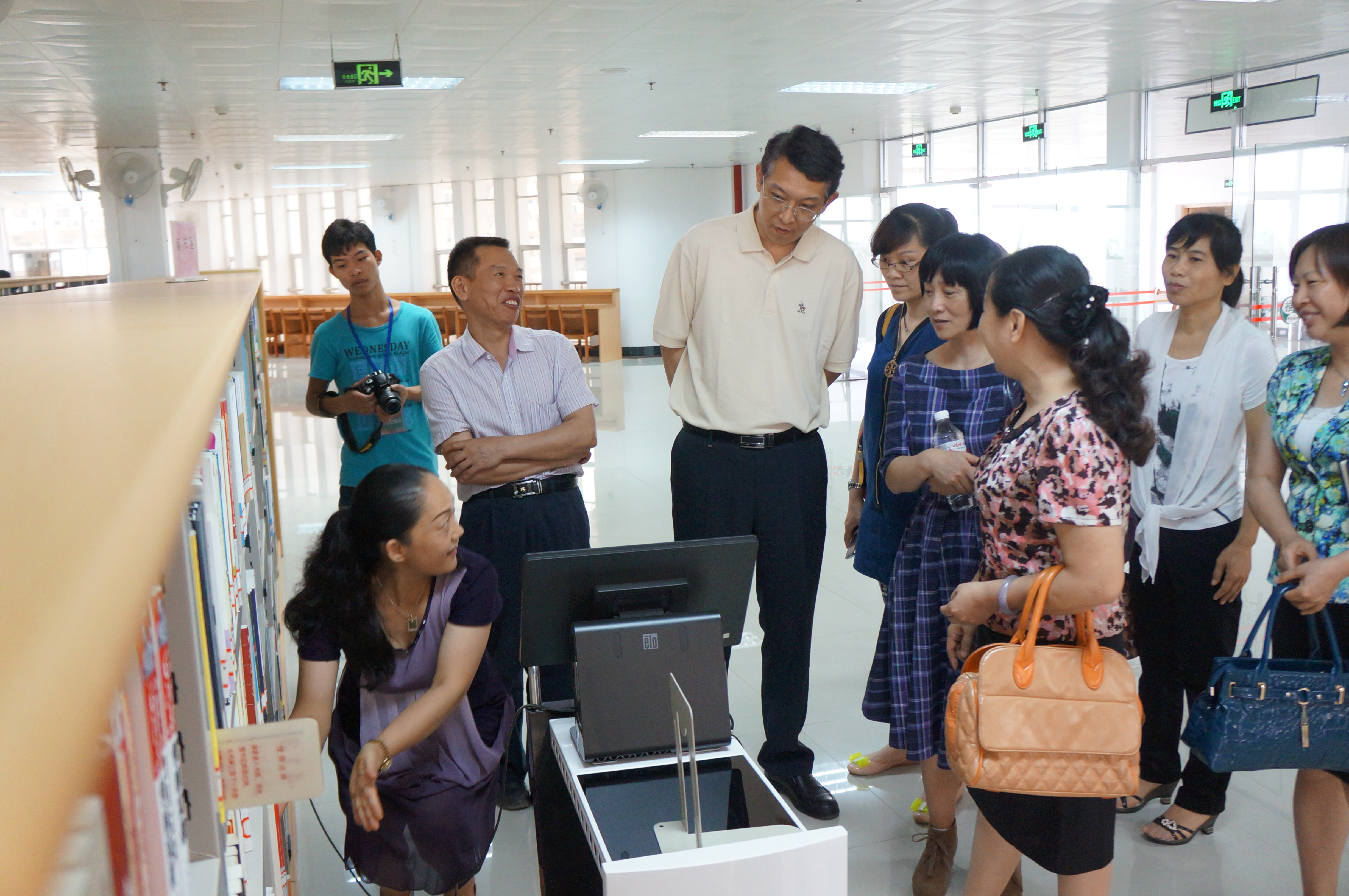 在南宁职业技术学院,杨毅副院长一行得到了该院韩伟平副院长、王永宁馆长及图书馆各部门负责人的热情接待。王馆长通过图文并茂的方式,介绍了该院图书馆近年来图书馆发展的基本情况,重点介绍了图书馆建设及读书服务方面的具体做法和体会;带领大家参观了该馆的环境布局、“畅销书推荐”的展示设计、电子报刊阅读机、文化展厅和丝绸文化馆的布置,同时逐一参观了视听室、阅览室、图书加工中心、学生自习室以及中心机房等各库室;最后,大家围绕如何加强系统数据库资源建设、如何提高馆藏资源利用率、如何提高读者服务质量等问题进行了交流。