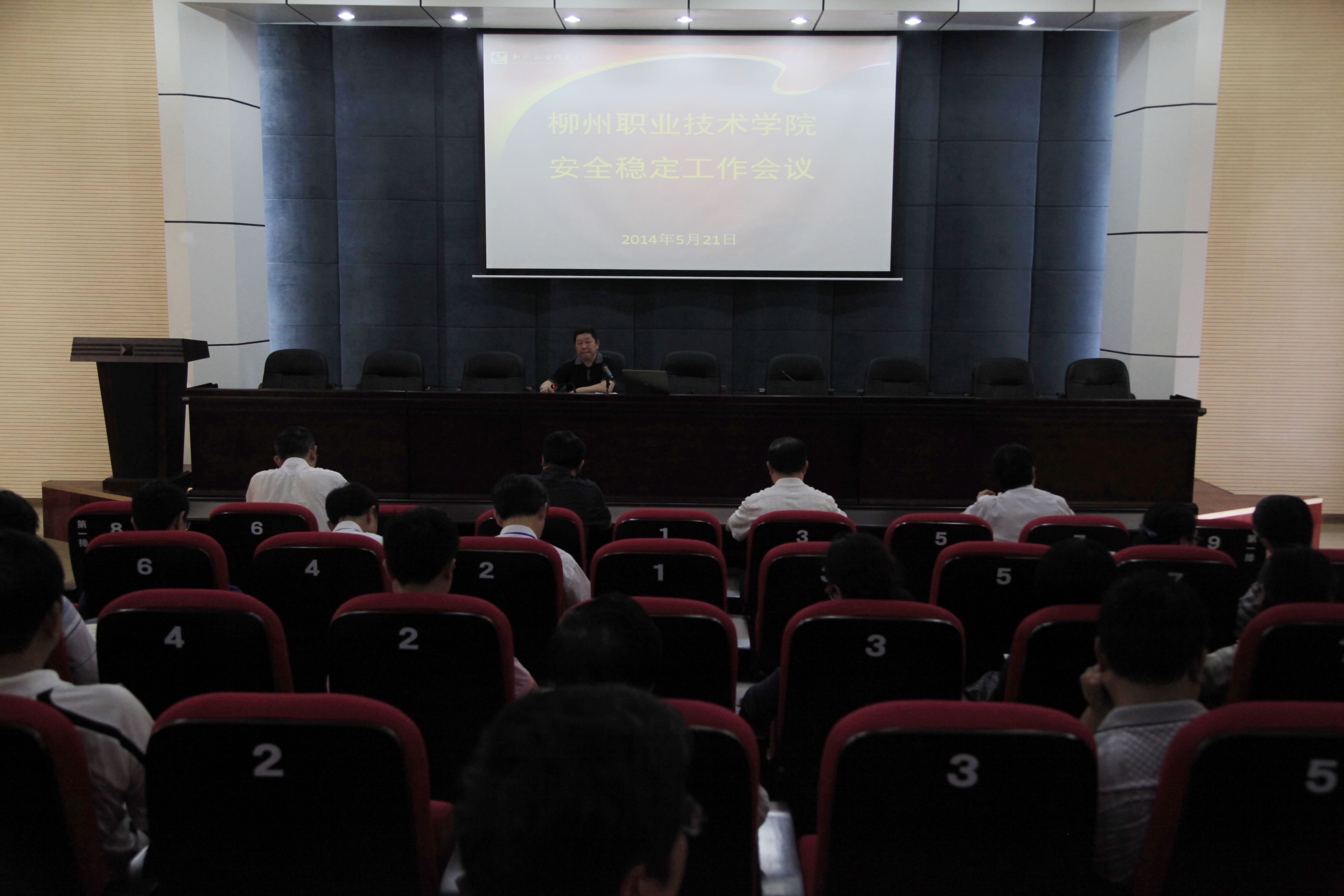 2014年5月21日下午,我院在行政办公楼100会议室召开安全稳定工作会议,学院领导朱伟才、石令明、阳旭、杨毅,院长助理敬志轩以及学院各部门、系部主要负责人参加了会议。会议由保卫处处长莫帮雄主持。