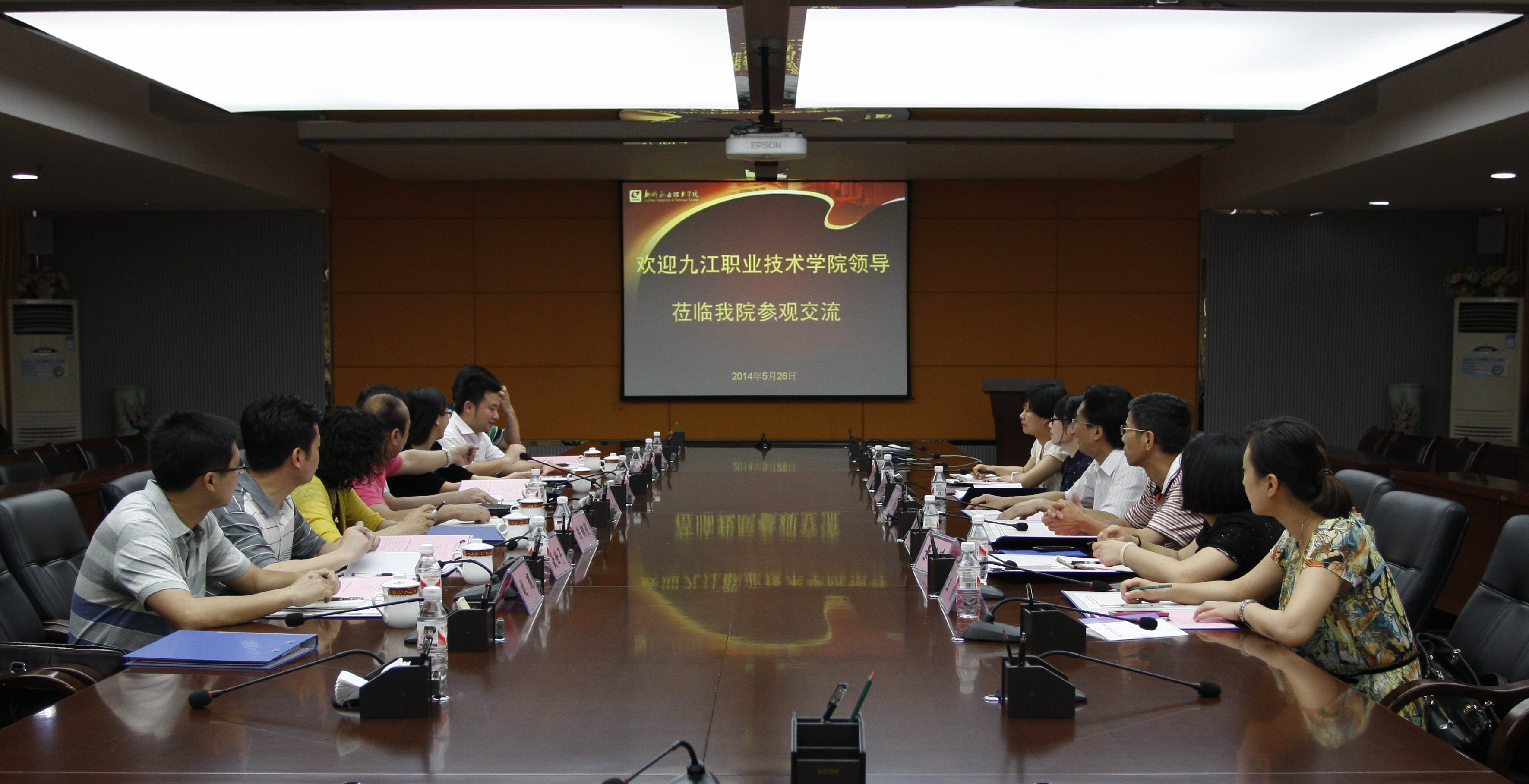 2014年5月26日上午,九江职业技术学院党委副书记曾凡龙一行8人来我院考察交流,我院党委副书记阳旭及党委宣传部、纪委(监察室、督导室)、学工处、团委、环境与食品工程系等部门负责人热情接待了来访客人。