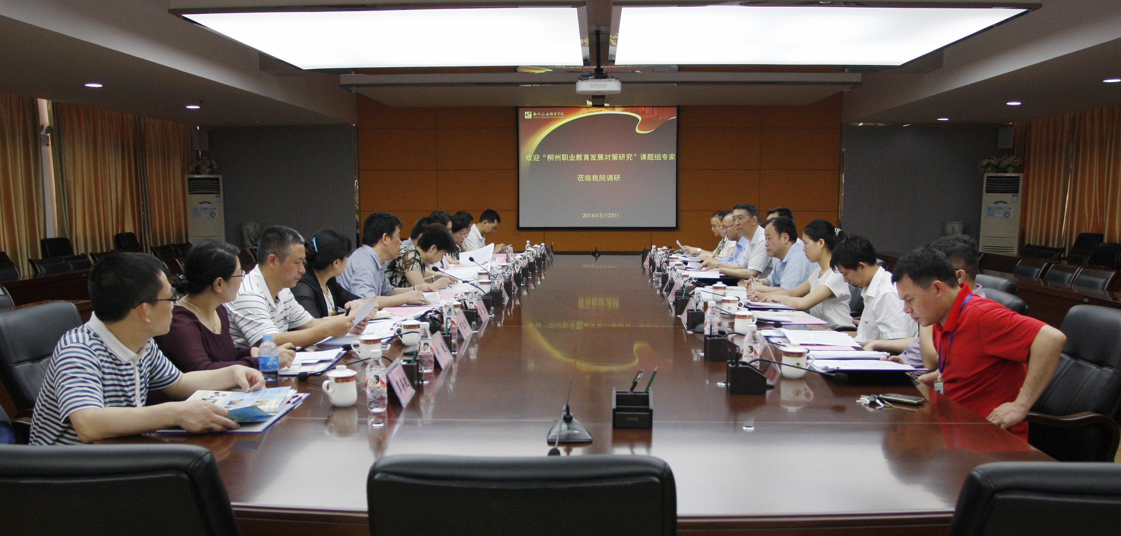 2014年5月23日上午,柳州市政协副主席刘向群在市教育局副局长潘旭阳,市政协教科文卫体委主任黄松涛,市政协委员、科协主席郑晓鸿等的陪同下,到我院进行“柳州职业教育发展对策研究”议题的调研。