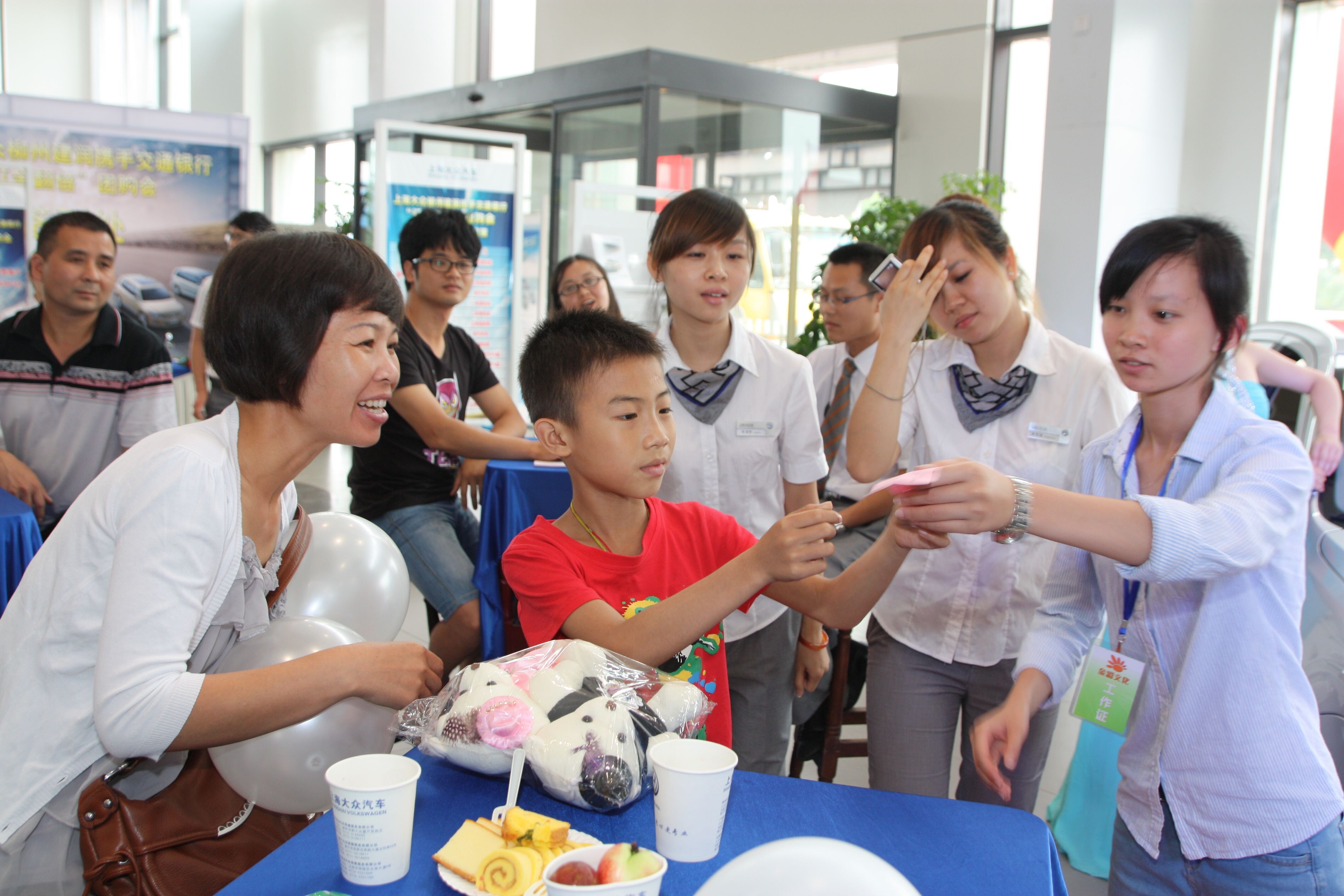 伍芳芳(右一)在柳州市汽贸园做志愿者