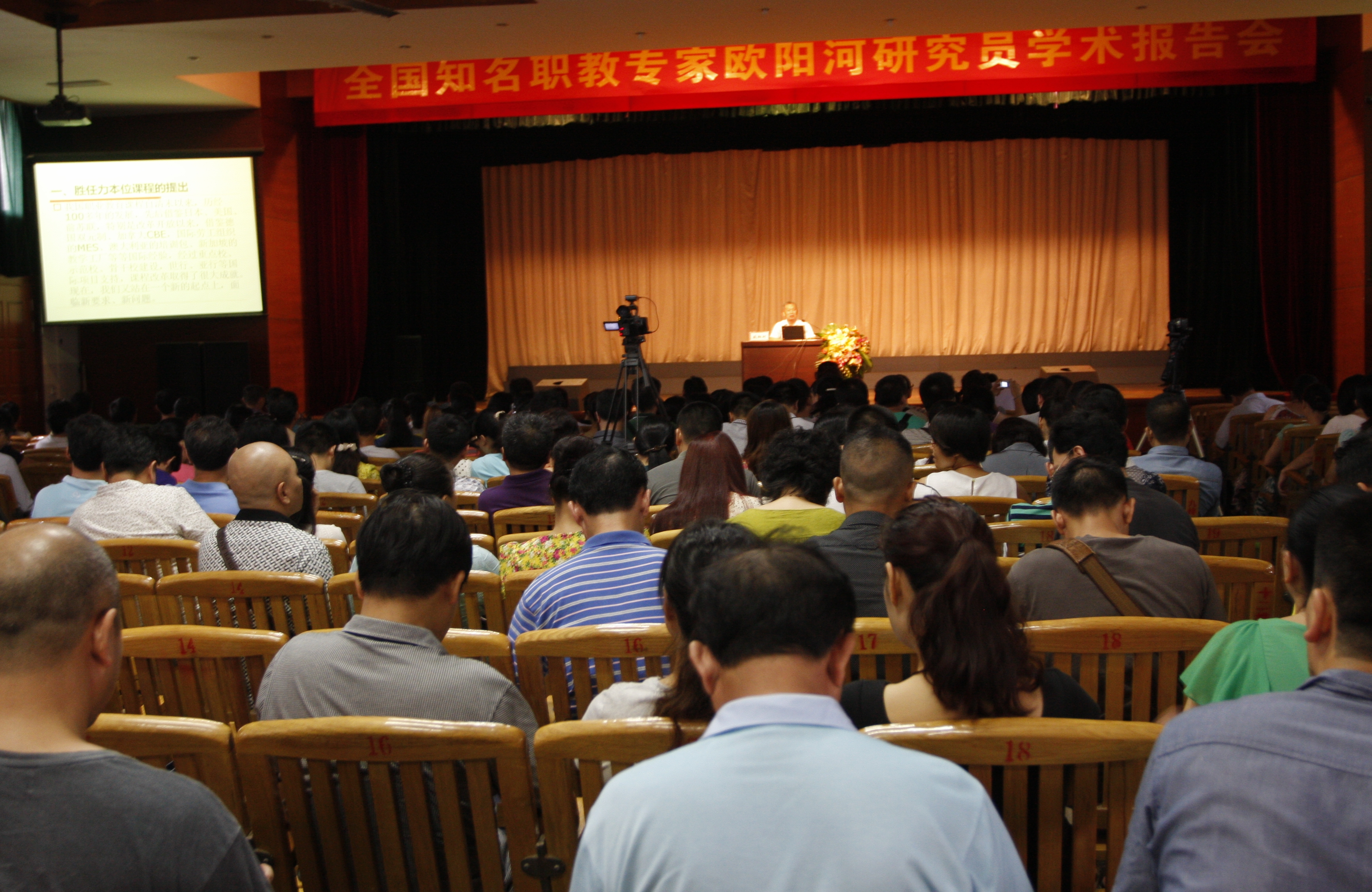 下午15:30,全院全体专任教师、行政兼课教师共400多人,在艺术校区大礼堂聆听了《胜任力本位课程:中国特色职教课程体系的新构想》报告,报告会由林副院长主持。针对原有的课程体系存在偏重培养技术技能,而忽视人的全面可持续发展等问题,欧阳河提出胜任力本位课程的目标是培养有知识、有技能、有情操、有工作胜任力的职业技术人才。围绕上述目标,欧阳河研究员系统介绍了胜任力本科课程的内容和结构,全面阐述了胜任力本位课程的开发、实施及评价。