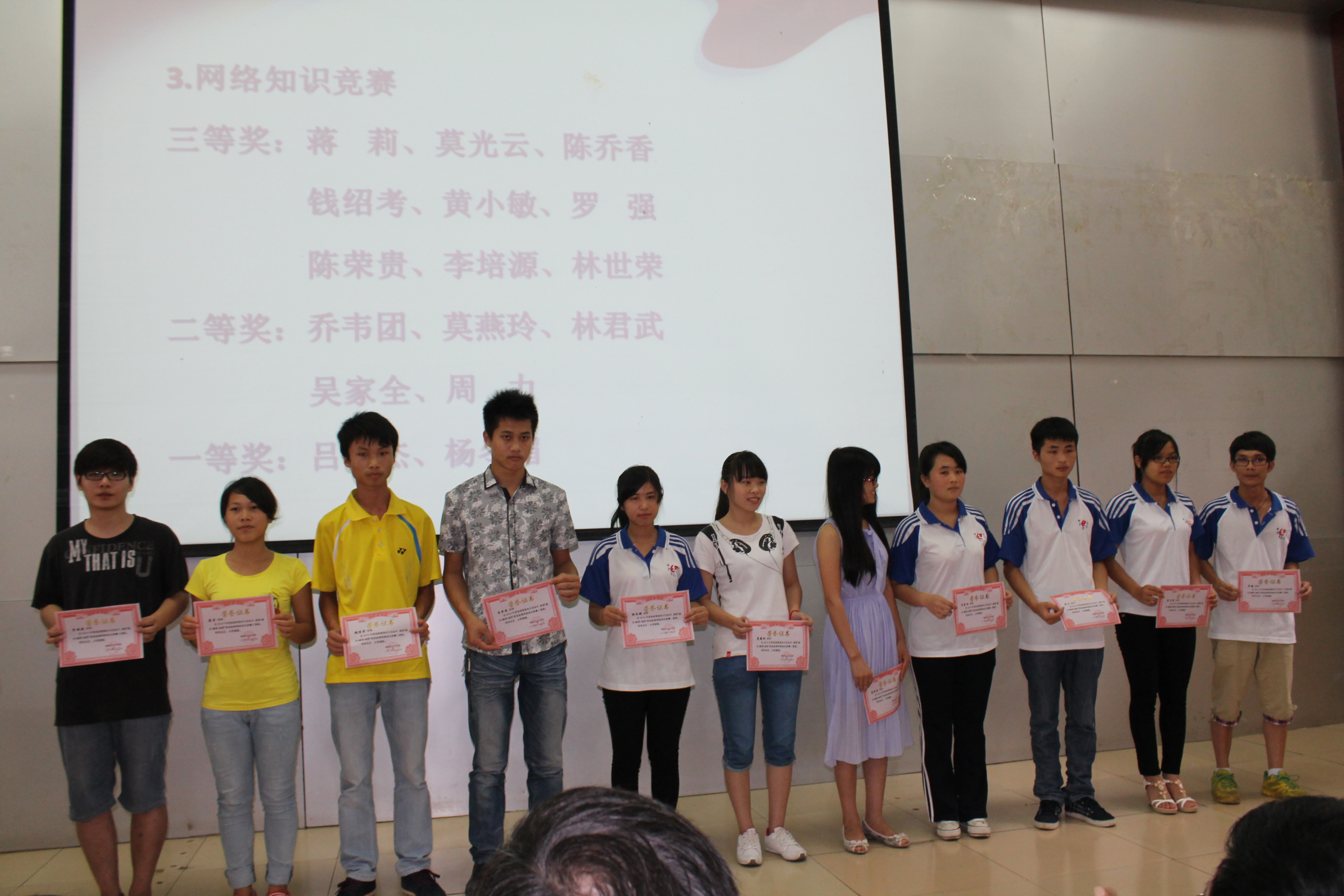 景副处长宣读了表彰决定,明德园4#408等202个宿舍获得 “安全文明宿舍”称号,吕伟杰等16名同学、韦尤近等15名同学、周艺婷等8名同学分别在学院资助政策网络知识竞赛、资助征文比赛、演讲比赛等赛事中获得优秀成绩(均含一、二、三等奖及优秀奖);同时,学院还评出了资助政策网络知识竞赛优秀组织奖、资助政策宣传板报比赛优秀系部。另外,我院李霖、韦尤近等两名同学也获得了自治区资助征文比赛三等奖的好成绩。随后学工处领导、各系党总支书记对获奖集体和个人颁奖。