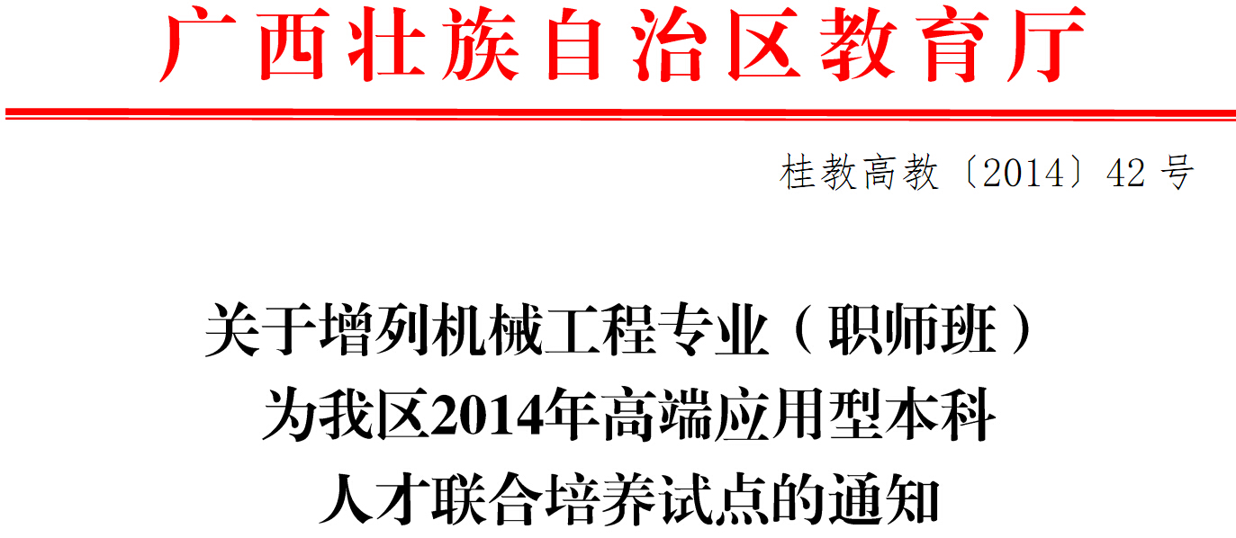 新闻网消息(文/图 记者 石玉丹) 根据教育厅6月23日下发的《关于开展高端应用型本科人才联合培养试点工作的通知》精神,2014年开始,我院将与广西科技大学联合开展机械工程专业(职师班)本科人才培养,成为广西首批高端应用型本科人才联合培养试点高校6所院校之一,是广西唯一一所具备联合培养中高职教师资格的高职院校。