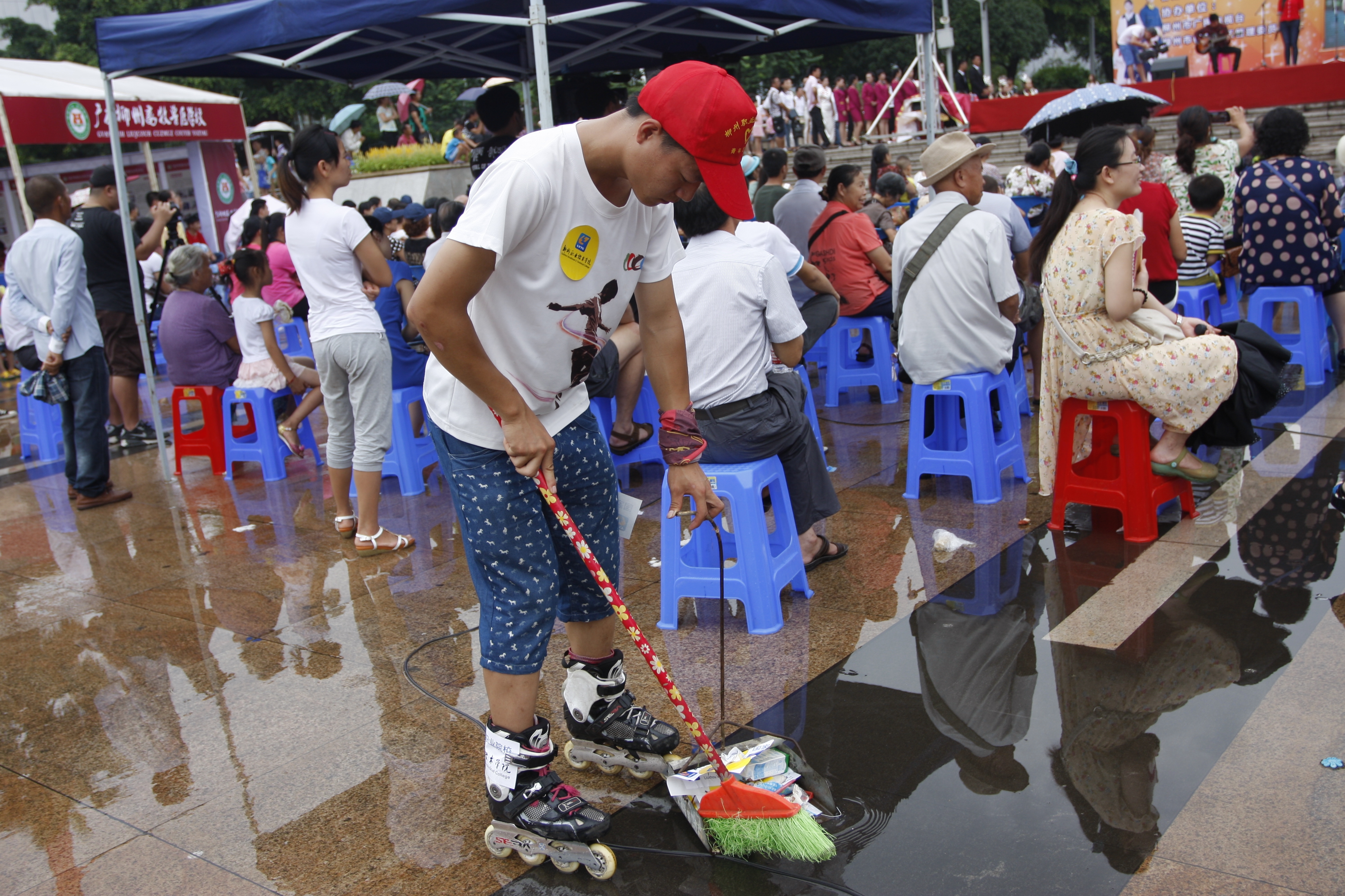 富有责任心的“轮滑爱好者”协会的同学们在活动期间义务打扫会场