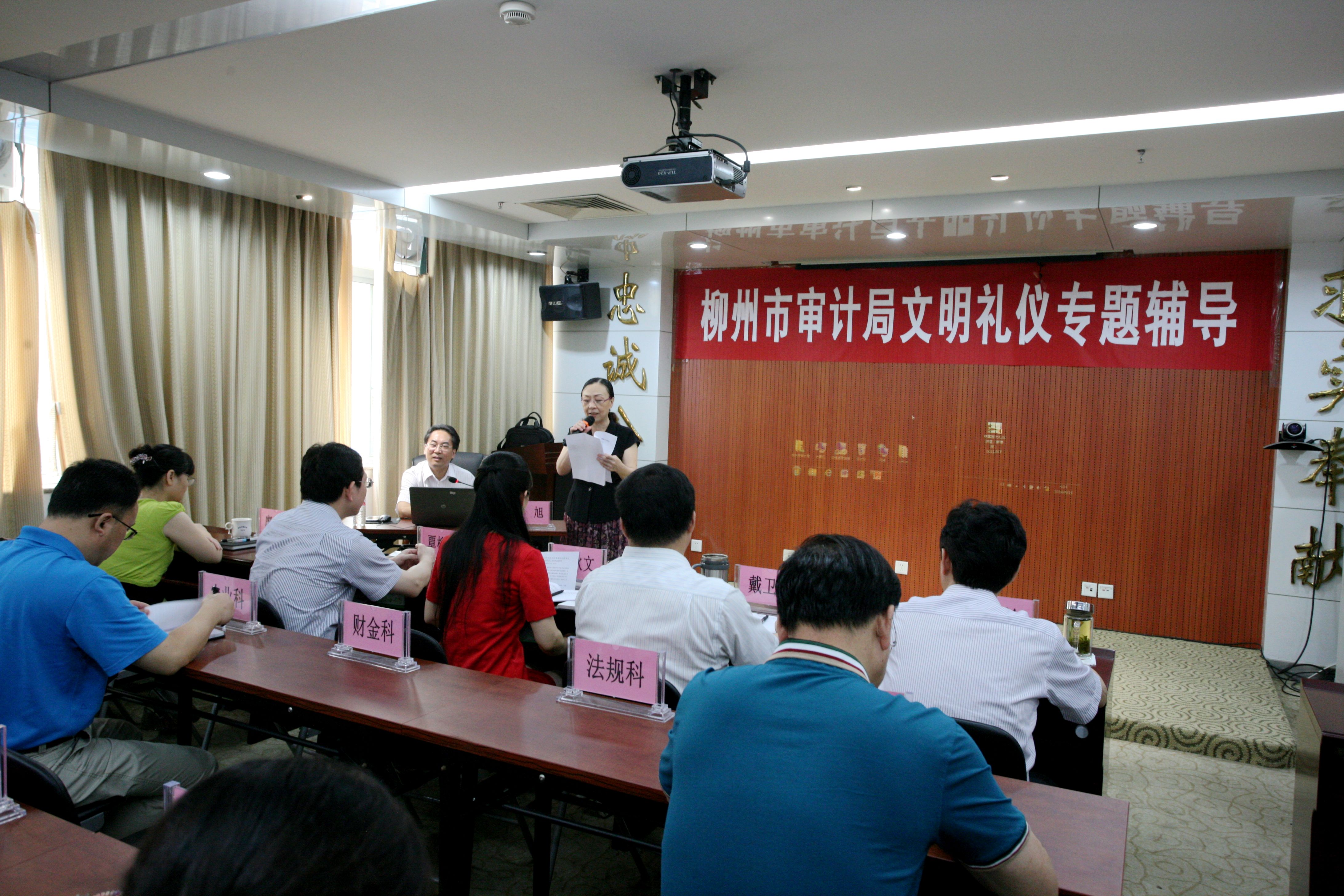 为贯彻落实习近平总书记的指示精神,加强党史国史的宣讲工作,柳州市组建了由11位专家组成的党史国史宣讲专家团,我院党委副书记阳旭教授是宣讲团专家之一。近日,阳教授先后受邀到柳州市审计局、柳州环保局环境监测站、柳州商务委等部门做题为《“不学礼,无以立”——中国传统礼仪文化》的讲座。