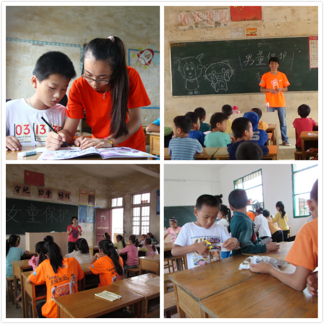 为营造互助互爱的学习氛围,结合高武村小学的实际,志愿者们开展了学习帮扶活动。一是开展了义务支教及文具捐赠活动,经过募捐、学院准备服务队为高武村筹集了共2000多元的文具用品和玩具,包括笔记本、铅笔以及各种简单易懂的漫画册、学习画报、图书600份。二是开展丰富多彩的兴趣课。据了解,当地的师资匮乏,除了基础的语文、数学课,没有任何课外活动拓展。对此,志愿者们开设了各种兴趣课,涵盖手工、英语、舞蹈、绘画、音乐等方面,大学生用自己的学识给这些可爱的大山孩子鼓励、快乐和知识。这些舞蹈老师、绘画老师、音乐老师,每天晚上备课,发挥自己的特长,指导这些小朋友,“我的小老师”“我最喜欢的人”等一幅幅温馨的作品呈现在眼前;每天上课、下课都听到孩子们唱着所教的歌,成就感和幸福感油然而生;下课后,小老师与孩子们一起做游戏。孩子们认真的上课,小老师们认真的备课、改作业,留下“王丽英同学,你的画真棒,伍芳芳姐姐感谢你,给我带来这么多惊喜,谢谢你们!”的评语。三是进行“关爱女童”教育,男生和女生身体有哪些区别?什么地方不许别人摸?据了解,女童自我保护教育普遍较弱,尤其是农村的女童教育。小老师给同学们讲解了女生身体隐秘的部位,提醒大家讲卫生,不能让别人抚摸,如果自己不愿意,熟人也不可以触摸,同时,告诉她们如何去防范,平时要结伴而行,不要轻易相信陌生人,不要独自到黑暗的地方,遇害时留下标记、大声求救,最后,还教了简单的防身术“踢、戳、咬”,此次的教育课,致力于保护女童,远离性侵害。此外,相对还开设了“男童教育”,教育他们保护好自己。