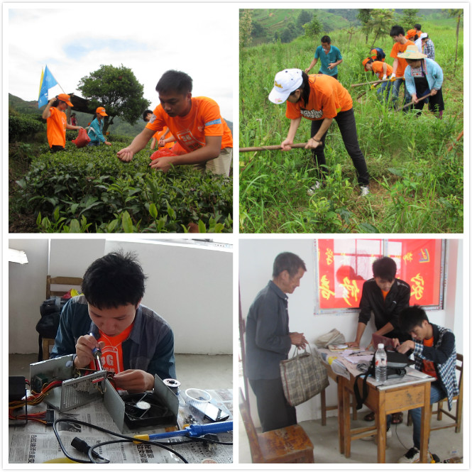 “需要维修的电器很多,我们想安装几个灯,这样傍晚可以争取更多的时间去维修。”来自家电维修小组组长杨权向带队指导老师提出申请。此次三下乡服务活动中,义务家电维修小组为广大村民进行义务维修家电,力求为之排忧解难,他们每天从早忙到深夜,回到住所后,几名维修组同学还在讨论技术难题如何攻破。拿着修好的家电,村民特意带来山泉水、黄瓜表示感谢。志愿者们白天进行支教,下午则去帮助农户清理杂草,采摘茶叶。志愿者们用自己掌握的技能,真心实意地为群众服务。