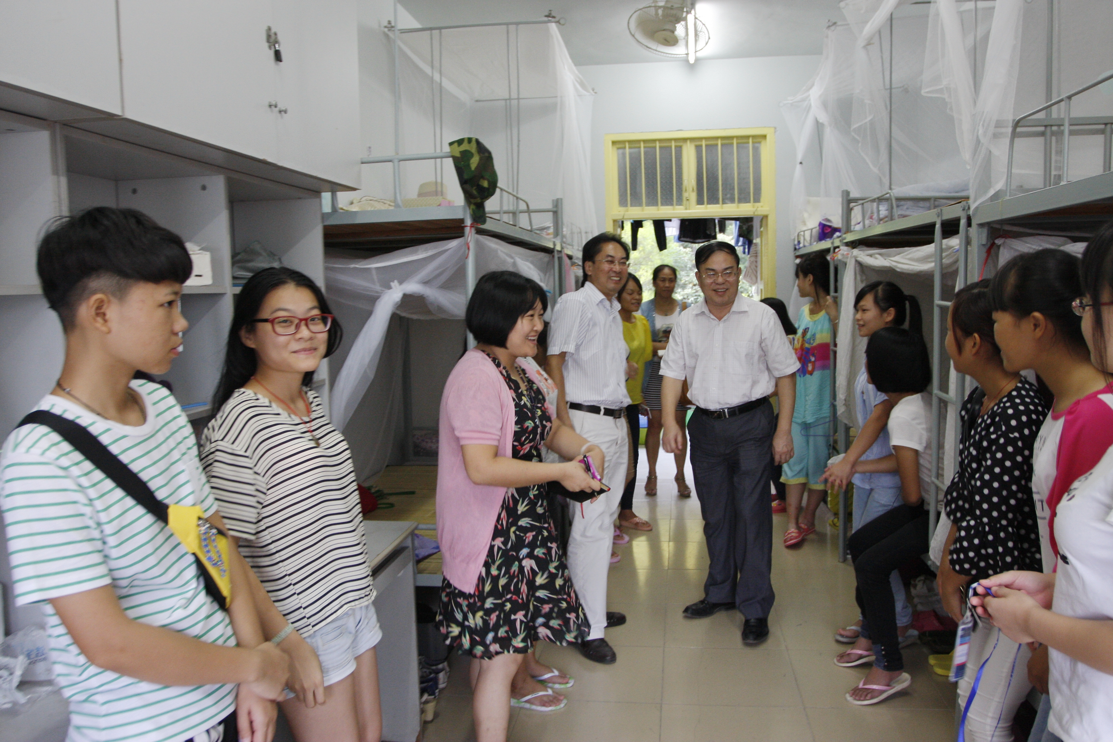 党委书记朱伟才、副书记阳旭到宿舍看望学生