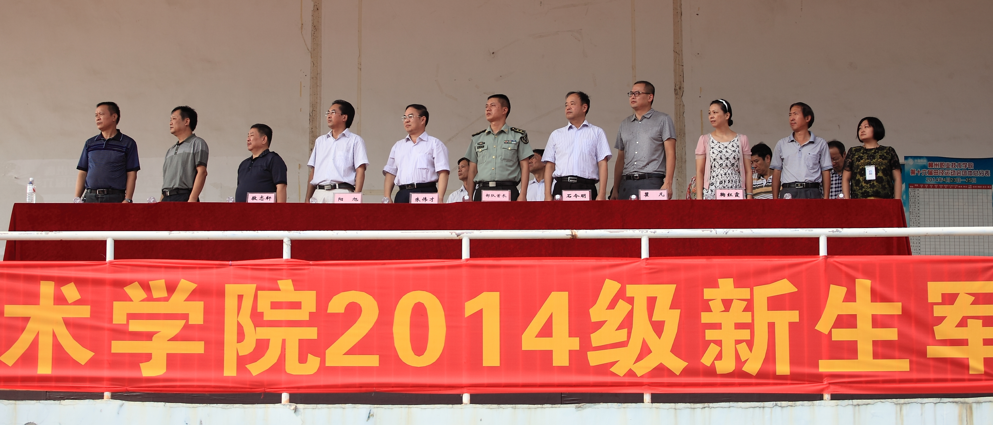 2014年9月26日上午9:30,2014级新生军训总结表彰大会在坡上足球场隆重举行,部队领导、学院党委书记朱伟才,院长石令明,党委副书记阳旭,副院长瞿凡、鞠红霞,院长助理敬志轩、党办、武装部、学工处、后勤处、院团委等部门负责人、各系部书记等出席了大会,大会由武装部副部长钟旭主持。