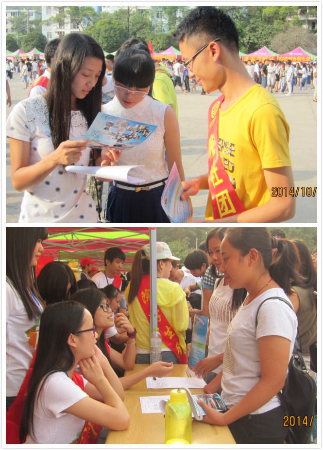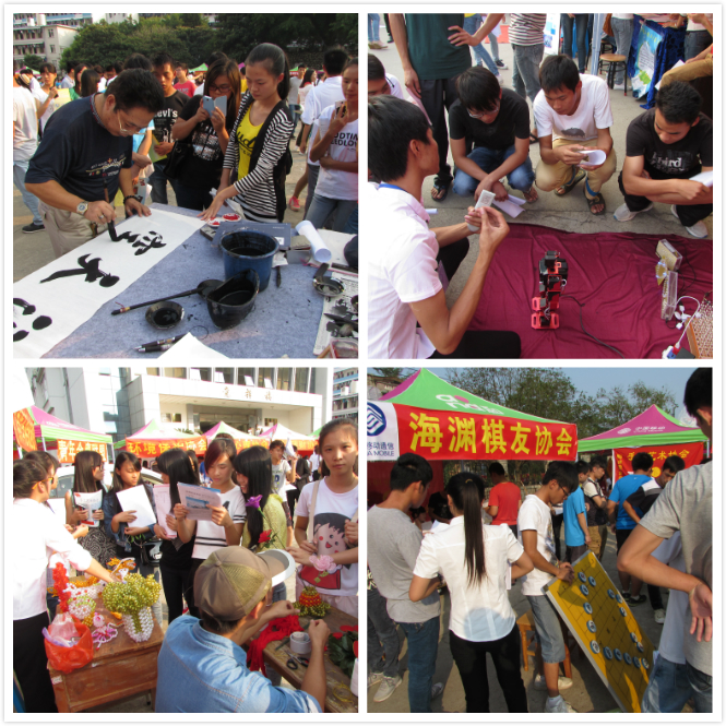 2014年10月10日下午15:00,学院30个社团、院学生会、院社团联以及各系分团委学生会等校园组织的招新活动,在坡上竞择楼前火热进行。怀着满心希望,2014级新生步入了美丽校园,由院团委主办的学院各级团学组织的一年一度招新活动,为新生们秀十八般武艺提供了一个服务同学、锻炼自我的平台。