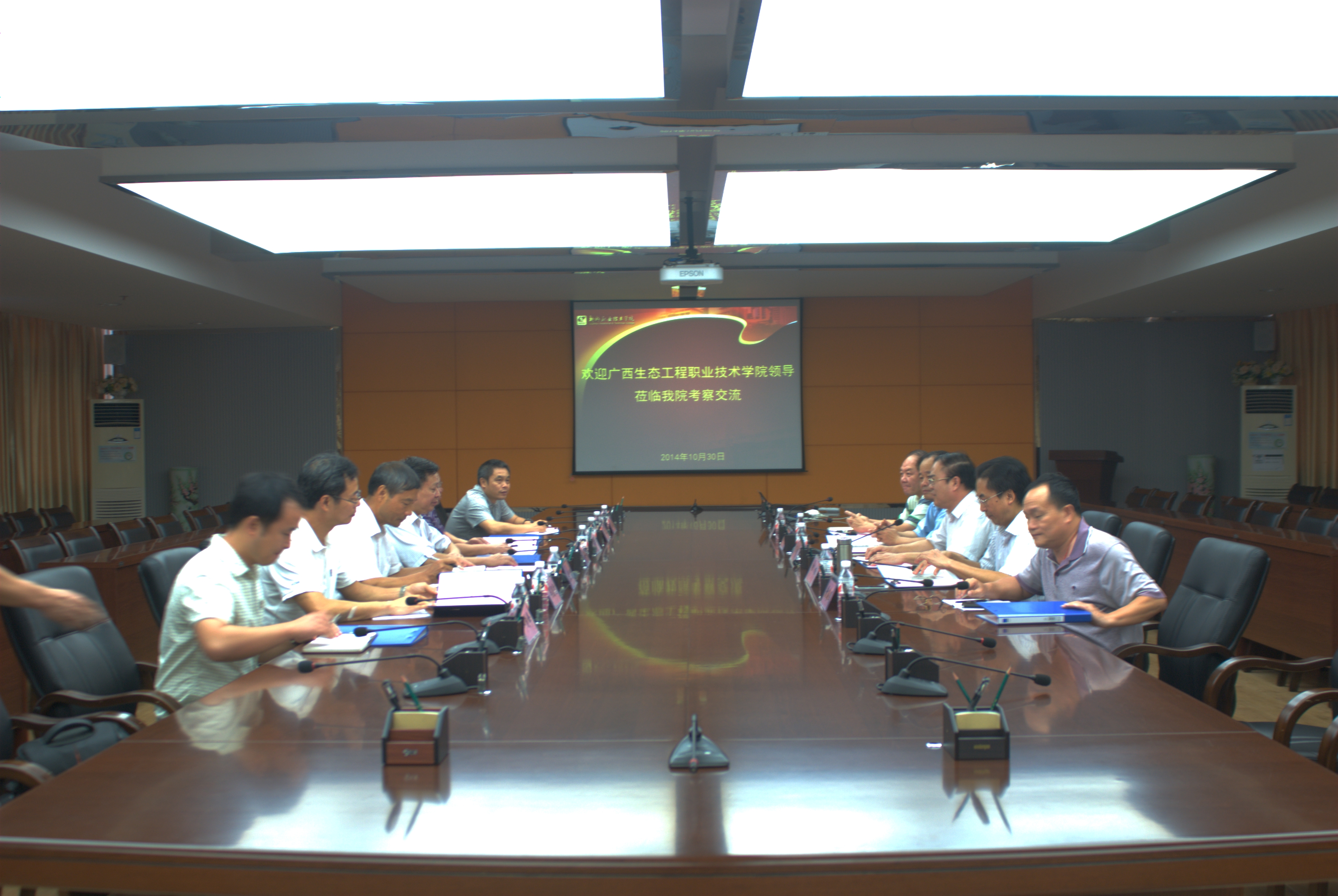 2014 年10月30日下午,广西生态工程职业技术学院党委书记庞正轰、院长罗掌华等一行7人,到我院考察交流。学院党委书记朱伟才、院长石令明、党委副书记阳旭等在300会议室与来访客人举行了座谈会,就学校管理、专业建设及学生培养等方面进行了深入的探讨和交流。学院教务处、汽车工程系等部门负责人也参加了座谈。