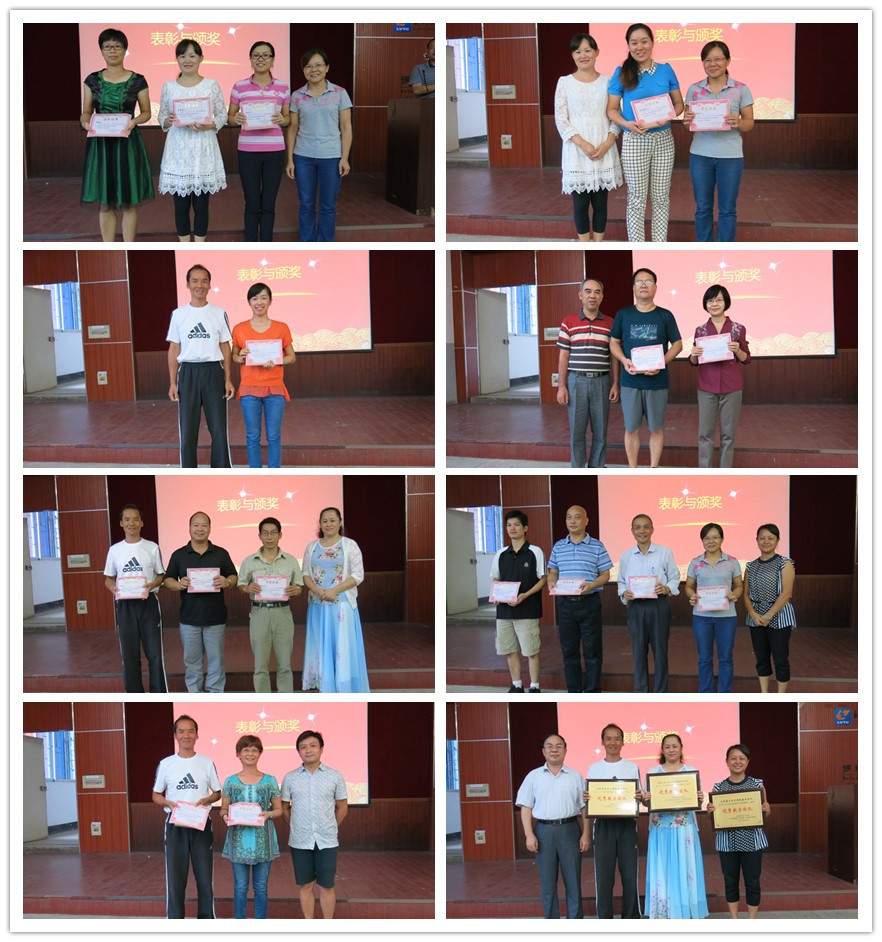 随后进行颁奖仪式。姜献生主任宣读了公共基础部《关于表彰2013-2014学年教学工作先进集体和个人的决定》,表彰了本学年度在教学工作中表现突出的教职工和教学团队。会上播放了先进个人、集体的视频集锦,或温馨或诙谐、或沉稳或激昂、或清新或恢宏,精美的视频展示了老师们和教学团队在日常工作和生活中的点点滴滴,共同的工作、生活画面和共同的心理感触让现场洋溢着欢笑与温馨。各教学团队负责人作为颁奖人员分别为教学创新奖、最受欢迎教师奖、优秀指导教师奖、团队建设突出贡献奖、优秀新人奖、优秀兼课教师奖、优质教学服务奖等7个个人奖项获得者,颁发奖状和纪念品,朱书记为获奖教学团队颁发了优秀奖学团队奖。