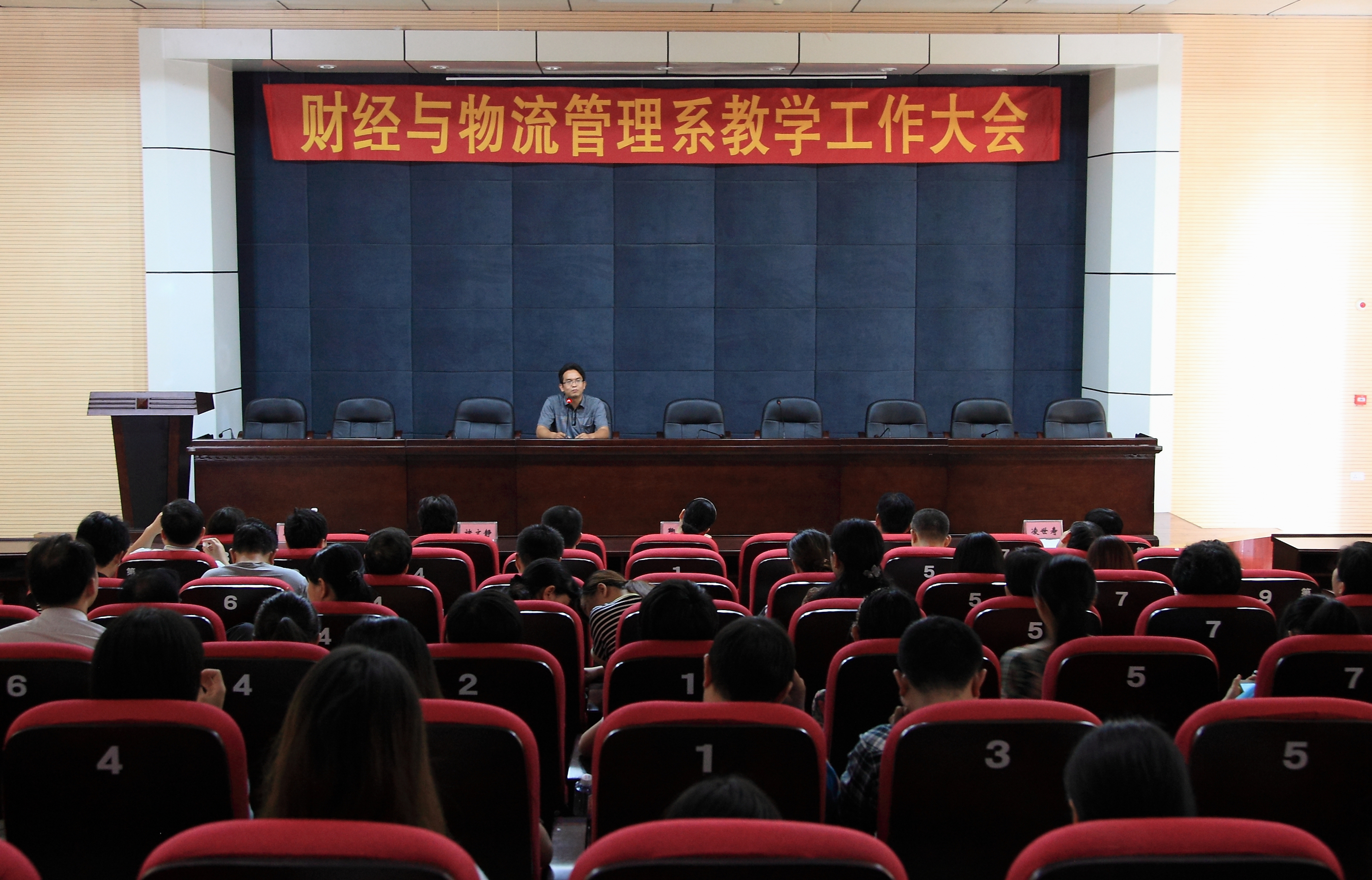 2014年10月30日下午,财经与物流管理系在行政100会议室召开了2013-2014学年教学工作大会。学院副院长鞠红霞,学院党委组织部(人事处)、教务与实训管理处等部门的主要代表,该系领导班子成员及系部全体教职工、2013级学生代表参加了大会。大会由凌世寿副主任主持。
