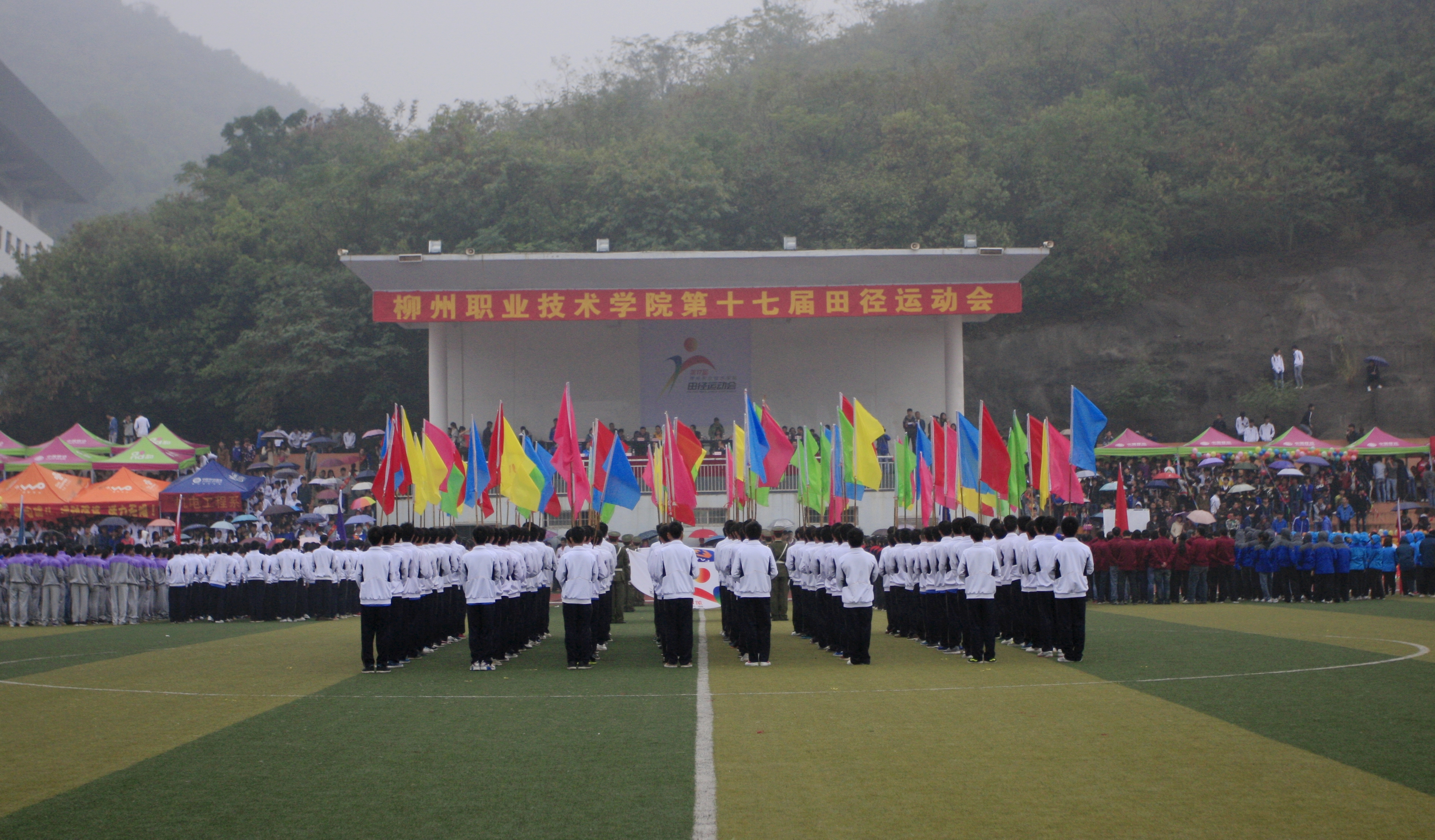 新闻网消息(记者石玉丹 摄影/朱敬民、杨世海、学院电视台)11月5日,尽管下着小雨,柳州职业技术学院田径场上参加第十七届运动会开幕式的师生们,心中都充满期待,期待赛事开场,期待运动会开幕。